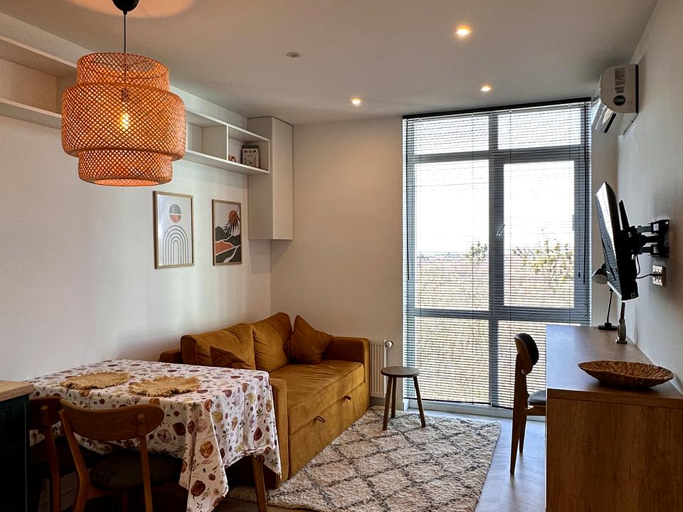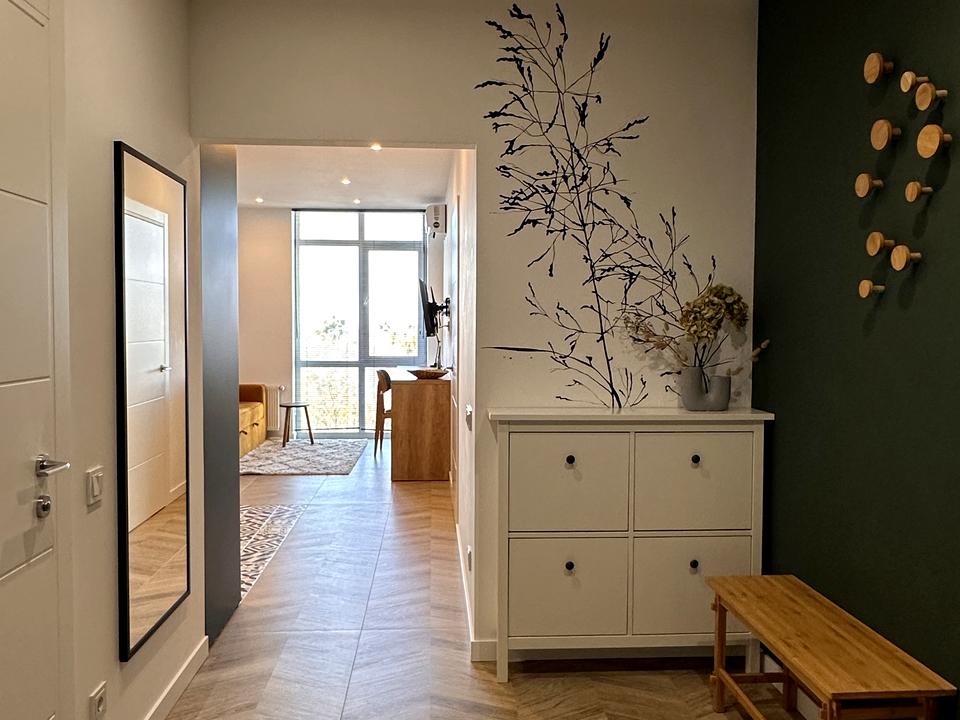В квартирі 1 кімната, Тип будинку - Спец. проект. Є газ, кухонна плита газова. Є балкон. У квартирі є Телевізор, Підігрів підлоги, Кондиціонер, Пральна машина, Душова кабіна, Холодильник, Посудомийна машина. Будинок побудований в 2022 році. Загальний стан квартири - З ремонтом. Гаряча вода - газовий котел. Кількість санвузлів: 1. Інтернет оптоволоконний. Працює без світла - вода, газ, опалення, інтернет, резервне живлення квартири (акумулятори). Тип кухні - кухня-студія. Кількість спален: 1. Комісія за послуги 100 %