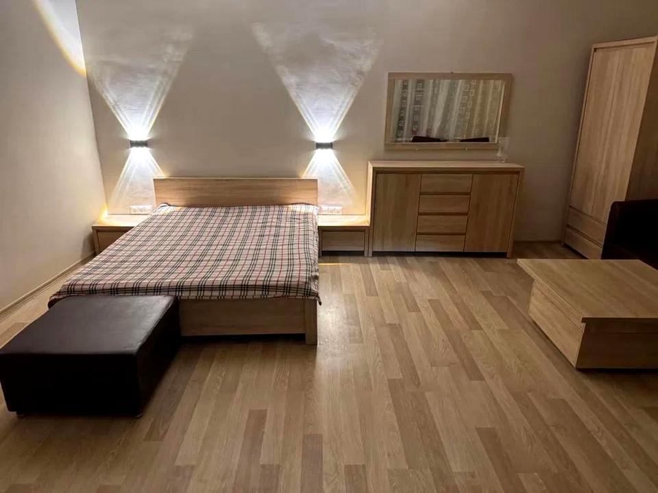 Квартира повністю умебльована та обладнана необхідною технікою: холодильник, плита, варильна панель, мікрохвильова піч, пральна машина, електрочайник, праска. Є телевізор, кабельне та цифрове ТБ, Wi-Fi.