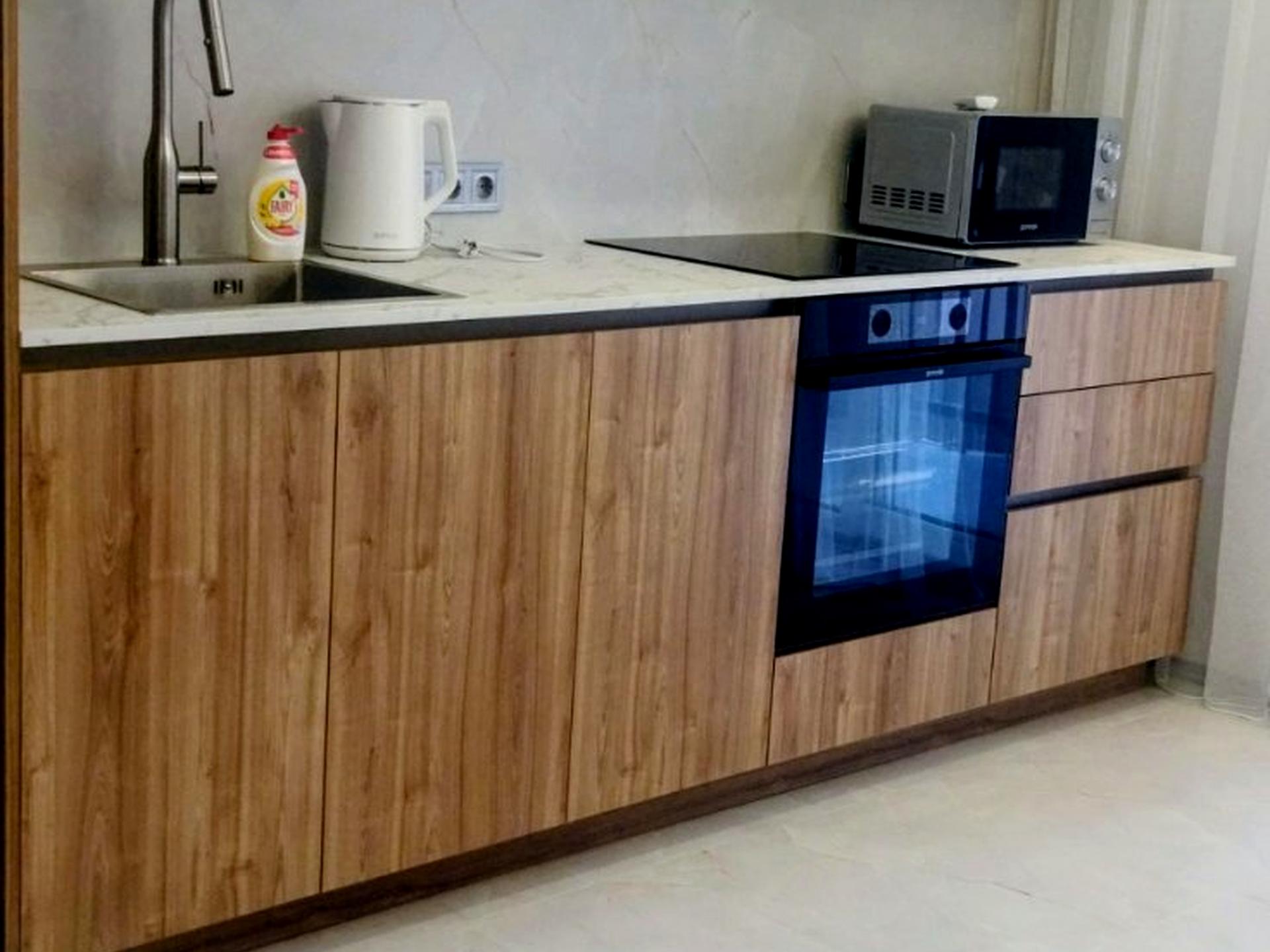 Наповнена всією побутовою технікою ( холодильник, пралка, духова шафа, варильна поверхня, ТВ, кондиціонер, мікрохвильова і т.д).