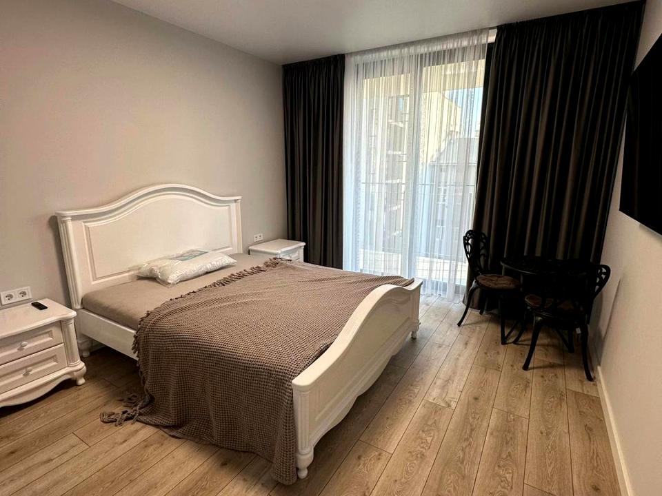 В квартирі 1 кімната, Технологія будівництва - Цегляна, Тип будинку - Спец. проект. Є газ, кухонна плита газова. Є балкон. У квартирі є Телевізор, Підігрів підлоги, Кондиціонер, Пральна машина, Душова кабіна, Холодильник, Мікрохвильовка, Посудомийна машина. Будинок побудований в 2024 році. Загальний стан квартири - З ремонтом. Гаряча вода - газовий котел. Кількість санвузлів: 1. Інтернет оптоволоконний. Працює без світла - вода, газ, інтернет. Тип кухні - окрема кухня. Кількість спален: 1. Комісія за послуги 100 %