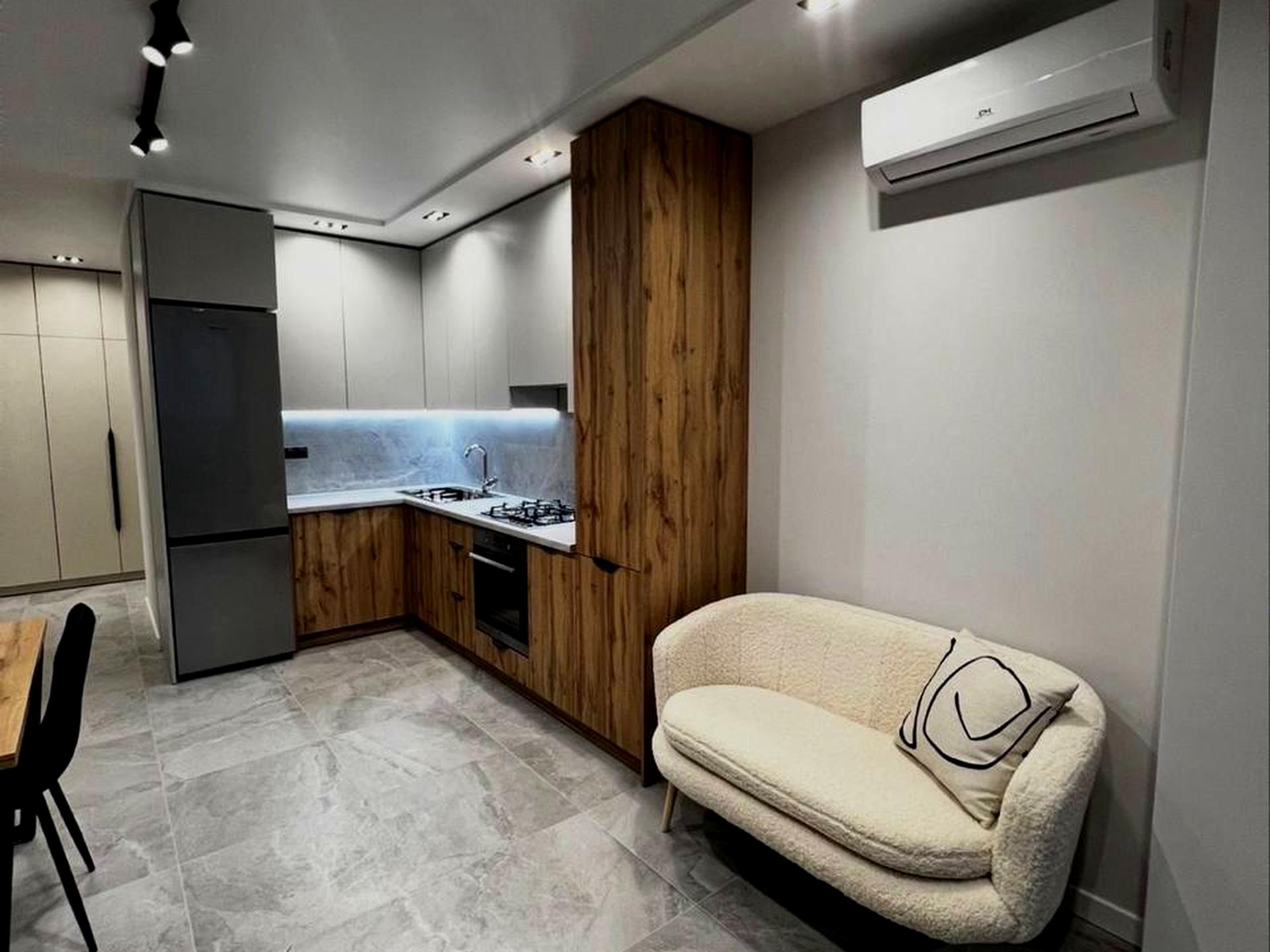 В квартирі 2 кімнати, висота стелі 2.7 метра, Технологія будівництва - Монолітно-каркасна, Тип будинку - Спец. проект. Є газ, кухонна плита газова. Є балкон. У квартирі є Телевізор, Підігрів підлоги, Кондиціонер, Пральна машина, Сушильна машина, Ванна, Холодильник, Посудомийна машина. Будинок побудований в 2022 році. Загальний стан квартири - З ремонтом. Кількість санвузлів: 1. Інтернет оптоволоконний. Працює без світла - вода, газ, інтернет. Тип кухні - кухня-студія. Кількість спален: 1. Є підземний паркінг, доступний як укриття. Інфраструктура території: дитячий майданчик, спортивний майданчик, двір без авто. Комісія за послуги 100 %
