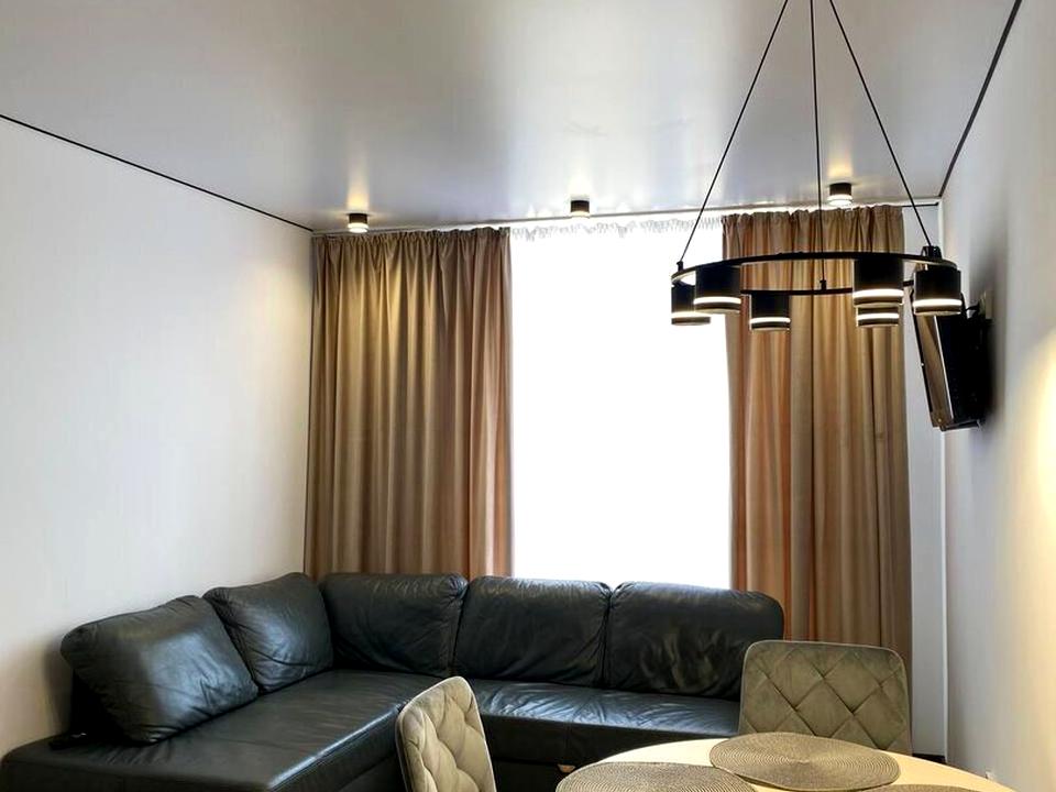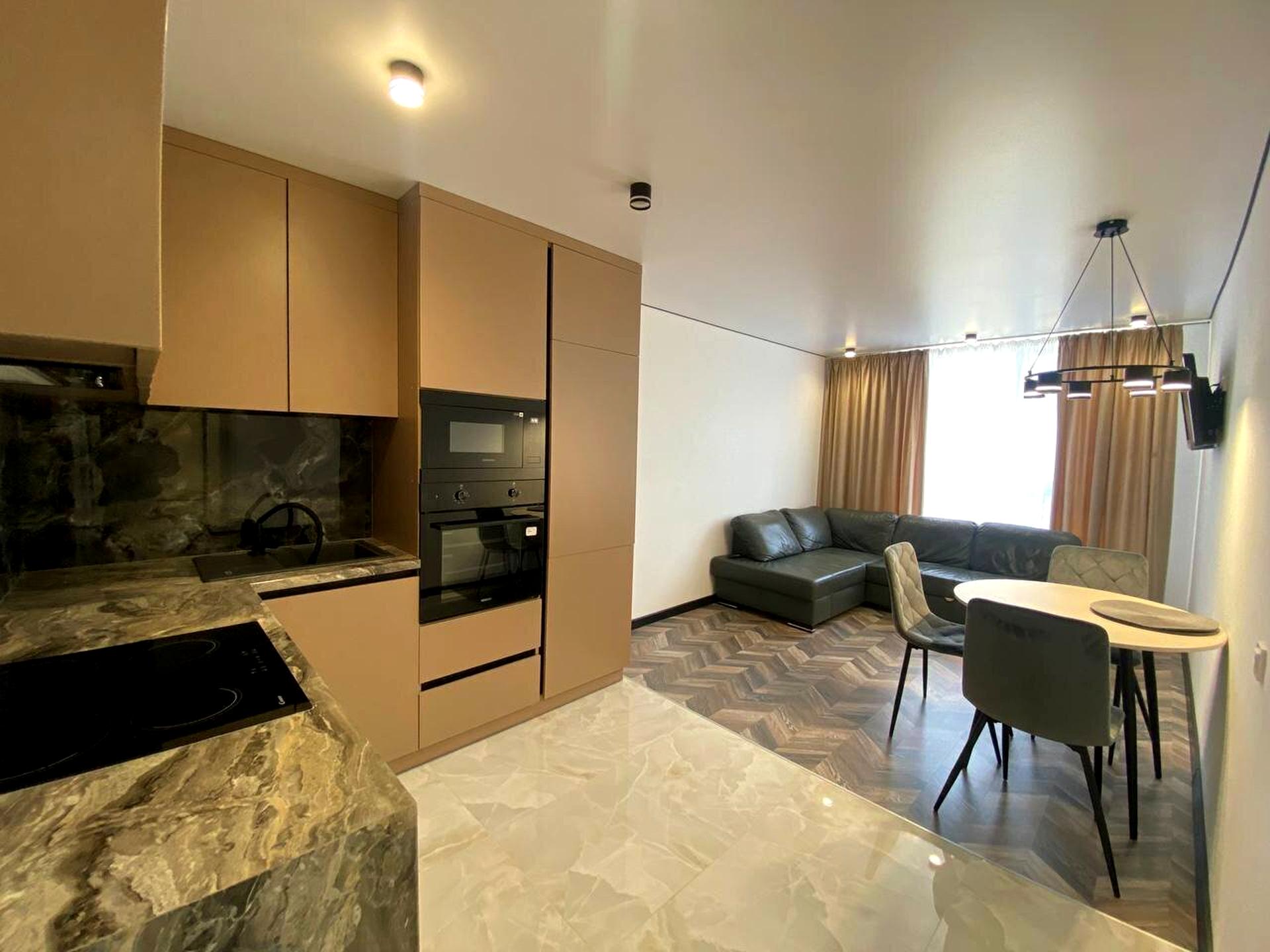 В квартирі 1 кімната, висота стелі 2.7 метра, Технологія будівництва - Монолітно-каркасна, Тип будинку - Спец. проект. Немає газу, кухонна плита електрична. Немає балкона. У квартирі є Телевізор, Кондиціонер, Пральна машина, Холодильник, Посудомийна машина. Будинок побудований в 2021 році. Загальний стан квартири - З ремонтом. Гаряча вода - електричний бойлер. Кількість санвузлів: 1. Працює без світла - вода, опалення, інтернет, ліфт. Тип кухні - кухня-студія. Кількість спален: 1. Інфраструктура території: дитячий майданчик. Комісія за послуги 100 %
