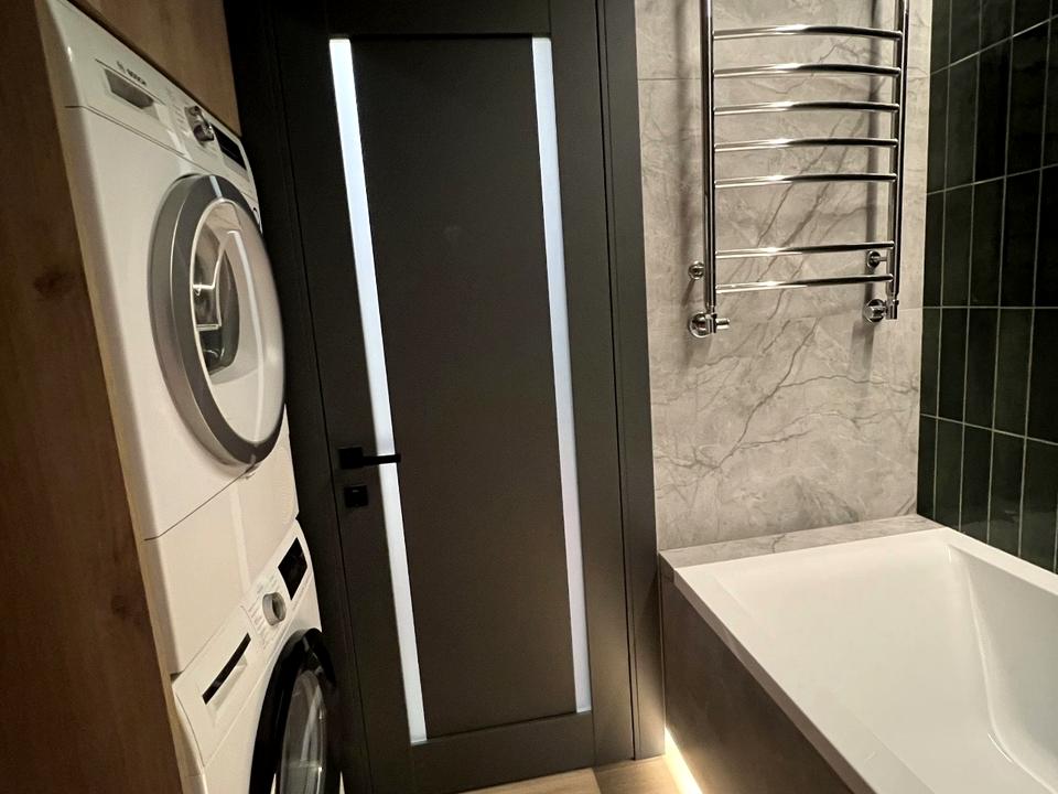 Квартира повністю укомплектована меблями та технікою: холодильник, пральна та сушильна машина, варильна панель, плита, духова шафа, мікрохвильова піч, електрочайник, пилосос, телевізор, швидкісний інтернет та Wi-Fi.
