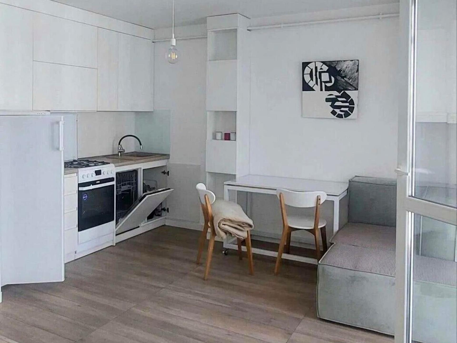 В квартирі 1 кімната, Тип будинку - Спец. проект. Є газ, кухонна плита газова. У квартирі є Пральна машина, Холодильник, Посудомийна машина. Будинок побудований в 2020 році. Загальний стан квартири - З ремонтом. Гаряча вода - газовий котел. Інтернет оптоволоконний. Комісія за послуги 100 %