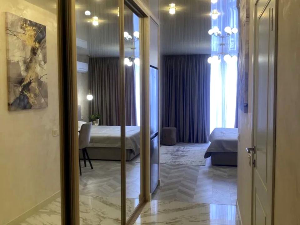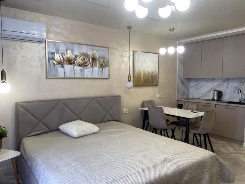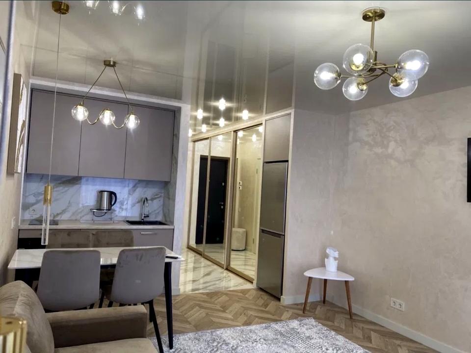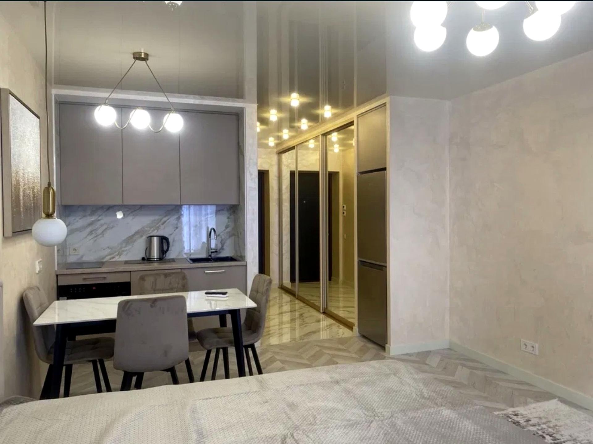 В квартирі 1 кімната, висота стелі 2.7 метра, Технологія будівництва - Монолітно-каркасна, Тип будинку - Спец. проект. Кухонна плита електрична. Є балкон. У квартирі є Підігрів підлоги, Кондиціонер, Пральна машина, Сушильна машина, Холодильник, Мікрохвильовка, Посудомийна машина, Посуд. Будинок побудований в 2025 році. Загальний стан квартири - З ремонтом. Безбар'єрність: дверні отвори в будинку шириною понад 0.9 м, пандус. Кількість санвузлів: 1. Інтернет оптоволоконний. Працює без світла - вода, опалення, інтернет. Тип кухні - кухня-студія. Кількість спален: 1. Є підземний паркінг, доступний як укриття. Комісія за послуги 100 %