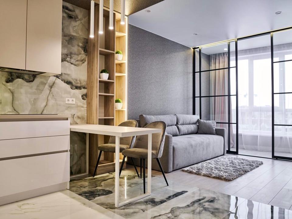 В квартирі 1 кімната. Планування кімнат Роздільне. Кухонна плита електрична. У квартирі є Телевізор, Підігрів підлоги, Кондиціонер, Пральна машина, Душова кабіна, Холодильник, Мікрохвильовка, Посудомийна машина. Будинок побудований в 2021 році. Загальний стан квартири - З ремонтом. Кількість санвузлів: 1. Тип кухні - кухня-студія. Кількість спален: 1. Комісія за послуги 100 %