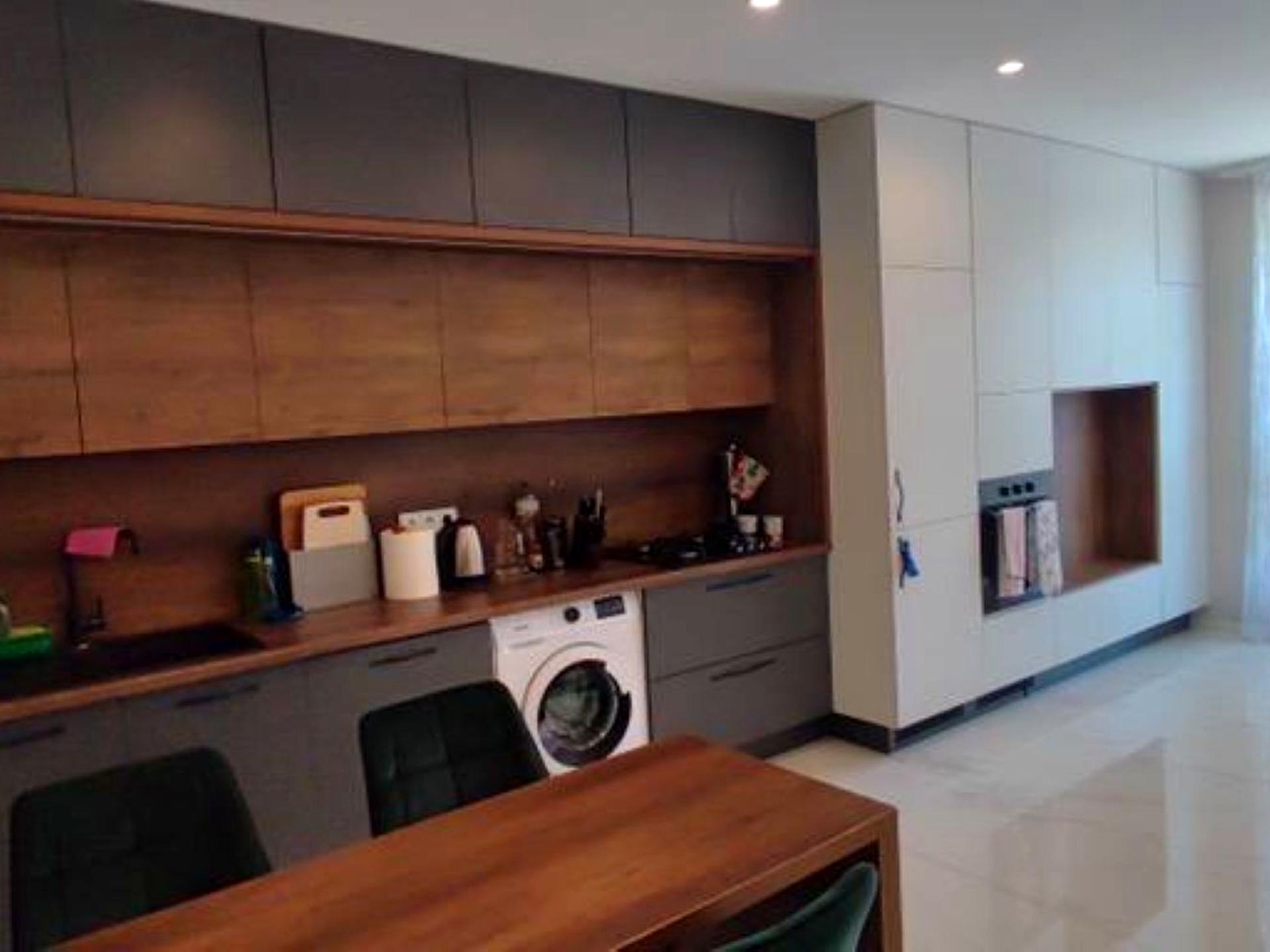 Квартира укомплектована меблями та технікою: повністю обладнана кухня, посудомийна машина, духова шафа, газова варильна плита, пральна машина