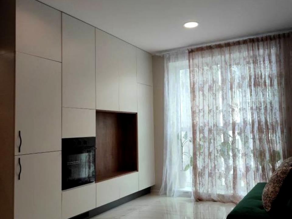 Простора квартира з функціональним плануванням: спальня та вітальня з розкладним диваном і робочим місцем