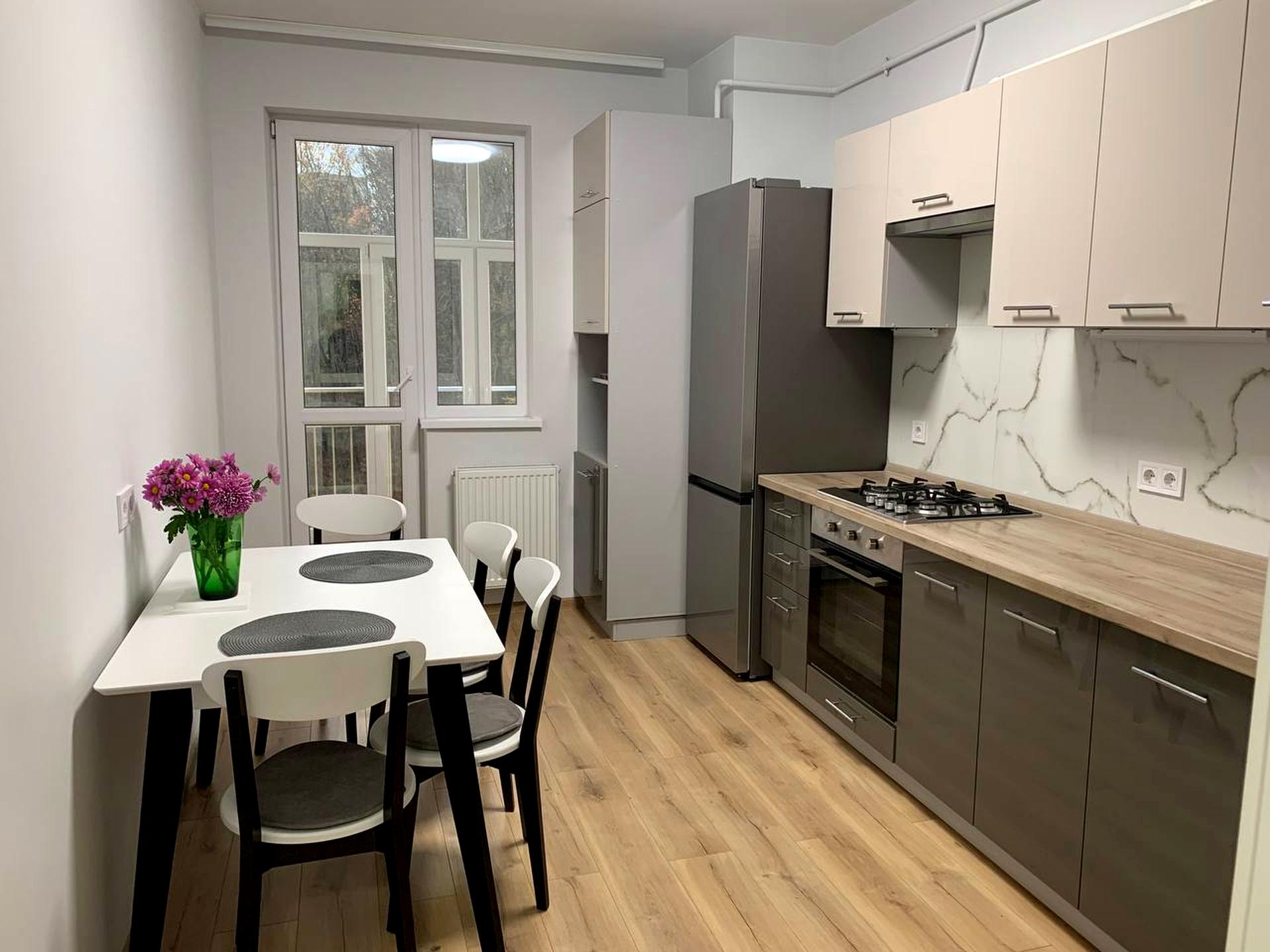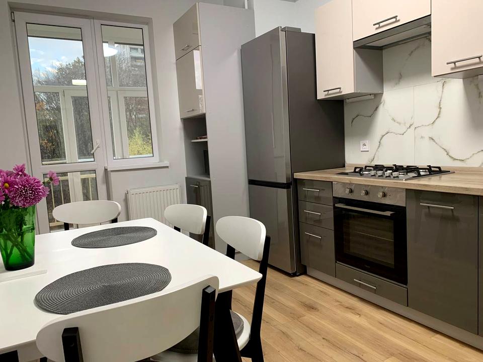 В квартирі 1 кімната, висота стелі 2.8 метра, Технологія будівництва - Монолітно-каркасна, Тип будинку - Спец. проект. Є газ, кухонна плита газова. Є балкон. У квартирі є Телевізор, Кабельне ТБ, Праска, Підігрів підлоги, Пральна машина, Ванна, Холодильник, Мікрохвильовка, Посуд. Будинок побудований в 2015 році. Загальний стан квартири - З ремонтом. Гаряча вода - газовий котел. Кількість санвузлів: 1. Інтернет оптоволоконний. Тип кухні - окрема кухня. Кількість спален: 1. Є підземний паркінг, доступний як укриття. Інфраструктура території: дитячий майданчик, спортивний майданчик, виокремлена зона для вигулу тварин. Комісія за послуги 100 %