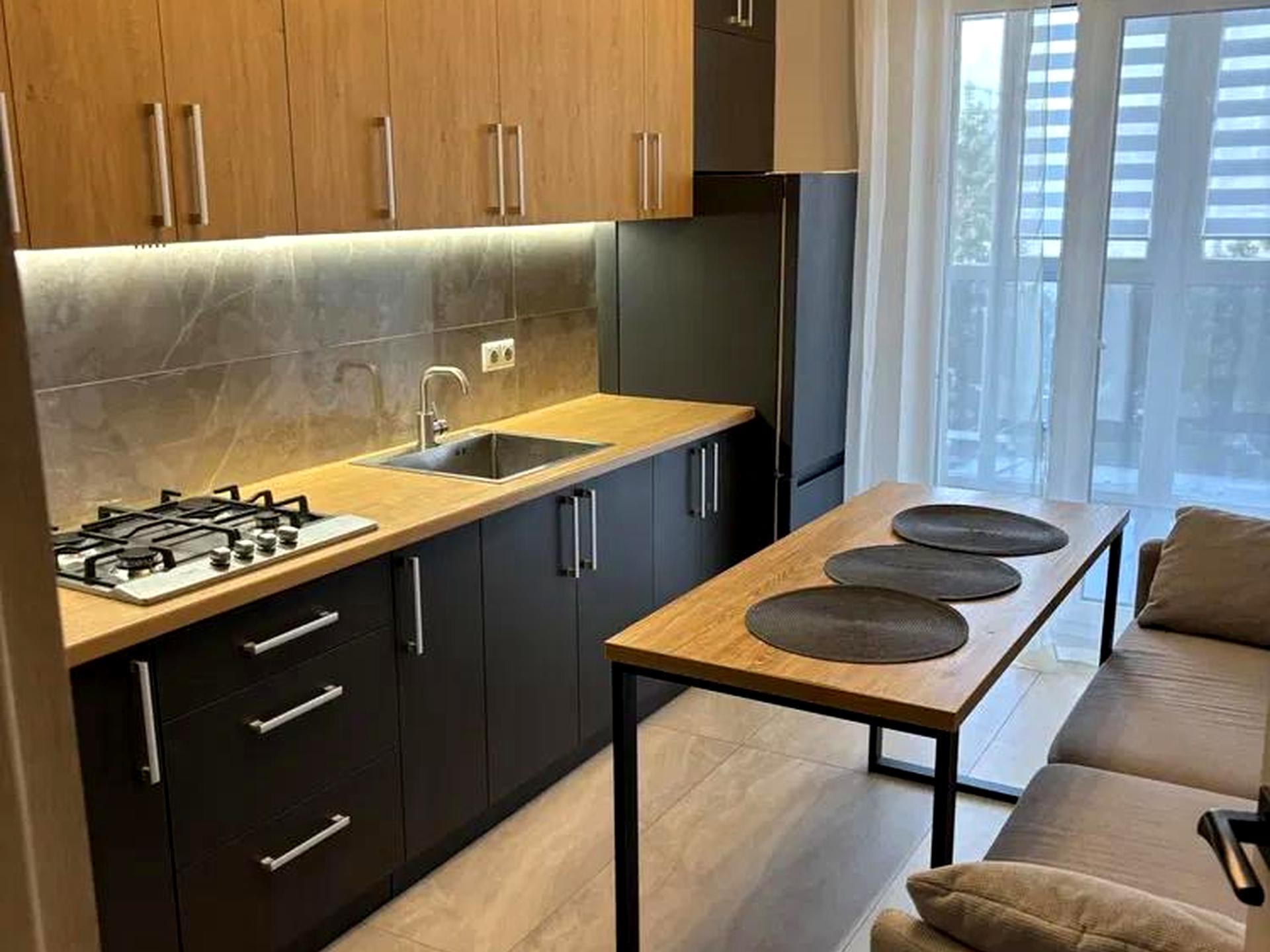 В квартирі 1 кімната, висота стелі 2.7 метра, Технологія будівництва - Блочна, Тип будинку - Спец. проект. Є газ, кухонна плита газова. Є балкон. У квартирі є Телевізор, Підігрів підлоги, Кондиціонер, Пральна машина, Сушильна машина, Ванна, Холодильник, Мікрохвильовка. Будинок побудований в 2023 році. Загальний стан квартири - З ремонтом. Гаряча вода - газовий котел. Кількість санвузлів: 1. Інтернет оптоволоконний. Працює без світла - вода, інтернет, ліфт, резервне живлення квартири (акумулятори). Тип кухні - кухня-студія. Кількість спален: 1. Є підземний паркінг, доступний як укриття. Комісія за послуги 100 %