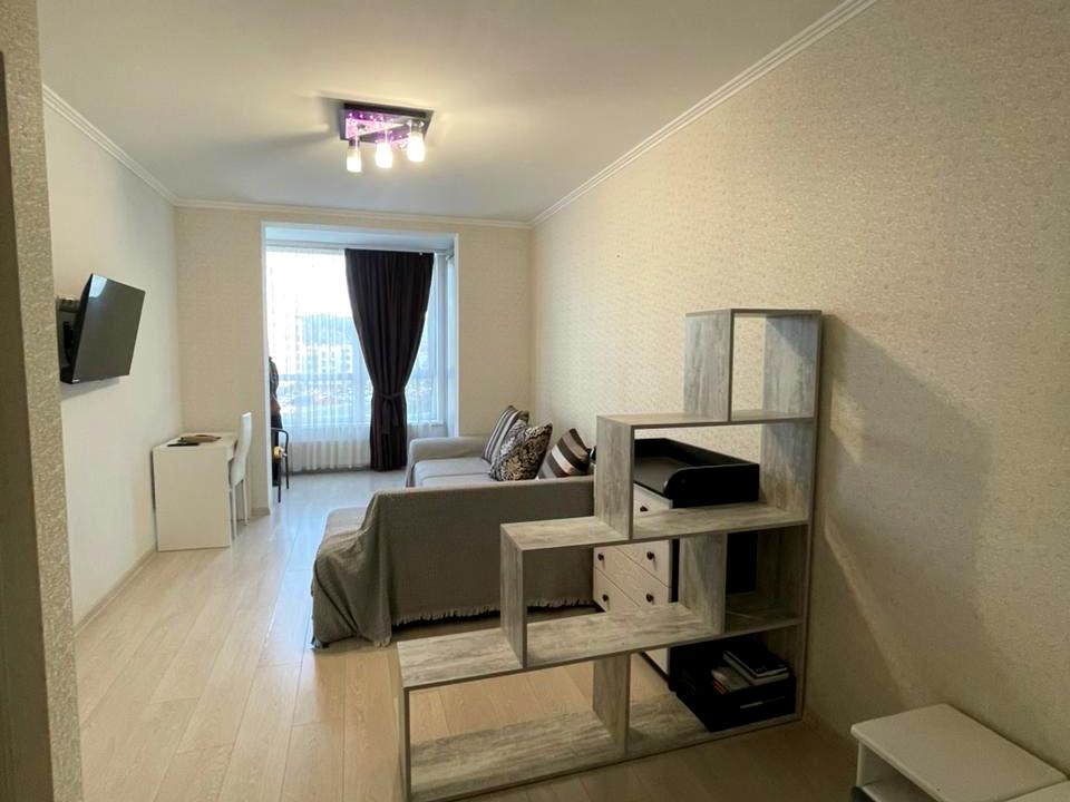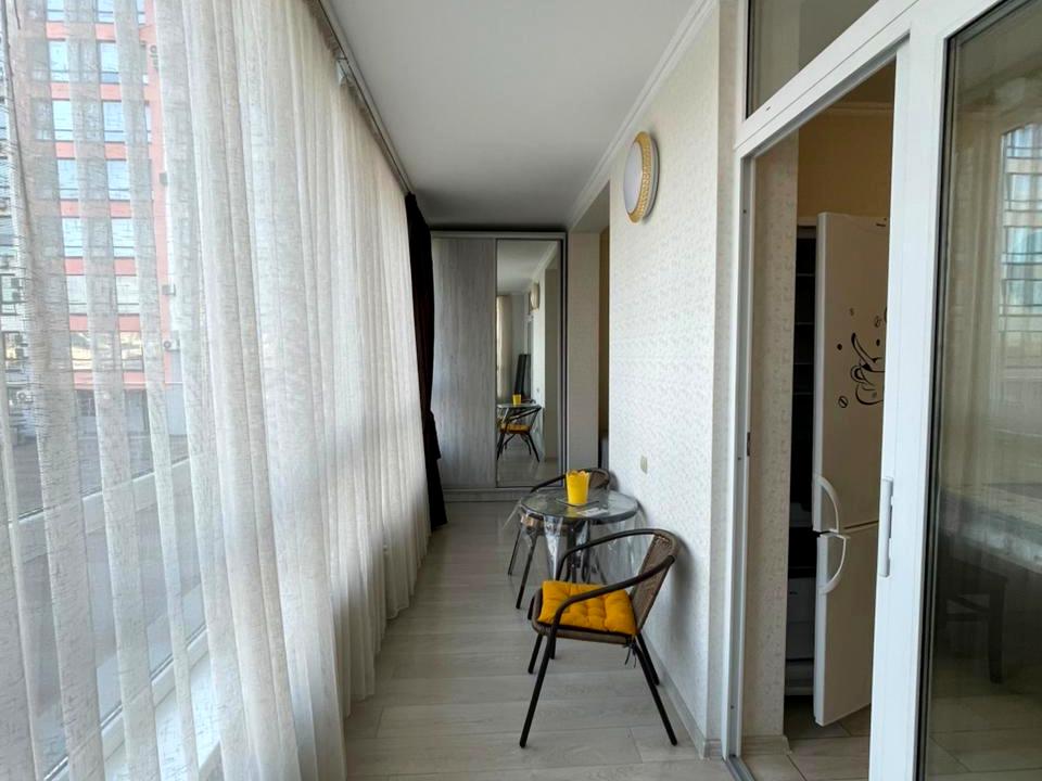 В квартирі 1 кімната. Є газ, кухонна плита електрична. У квартирі є Телевізор, Підігрів підлоги, Пральна машина, Ванна, Холодильник, Мікрохвильовка, Посудомийна машина. Загальний стан квартири - З ремонтом. Кількість санвузлів: 1. Тип кухні - окрема кухня. Кількість спален: 1. Є підземний паркінг, доступний як укриття. Комісія за послуги 100 %