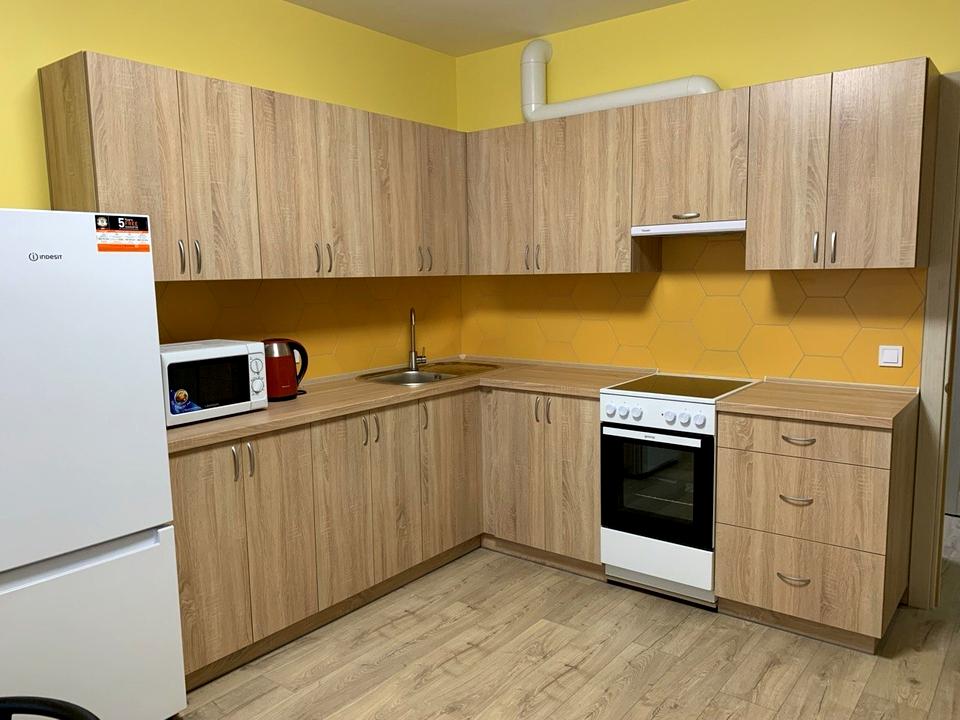 Квартира складається з великої прохідної кімнати і ізольованої малої кімнати, може бути спальня і кабінет, або спальня і дитяча кімната. Кухня ізольована.