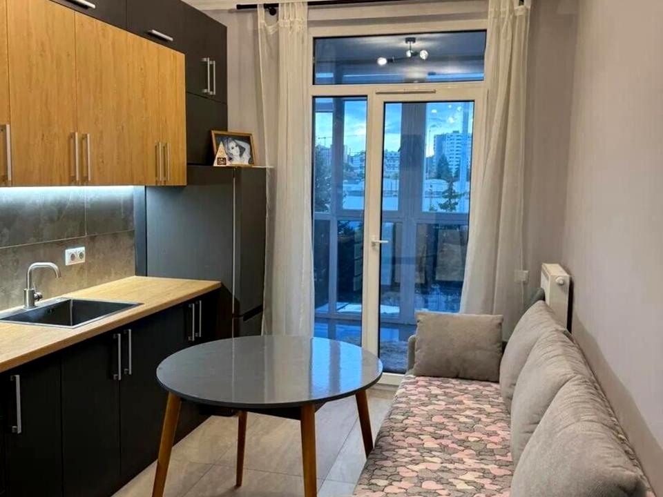 В квартирі 1 кімната, висота стелі 2.7 метра, Технологія будівництва - Блочна, Тип будинку - Спец. проект. Кухонна плита газова. У квартирі є Телевізор, Праска, Підігрів підлоги, Кондиціонер, Пральна машина, Сушильна машина, Ванна, Холодильник, Мікрохвильовка, Посудомийна машина. Будинок побудований в 2023 році. Загальний стан квартири - З ремонтом. Гаряча вода - газовий котел. Комісія за послуги 100 %