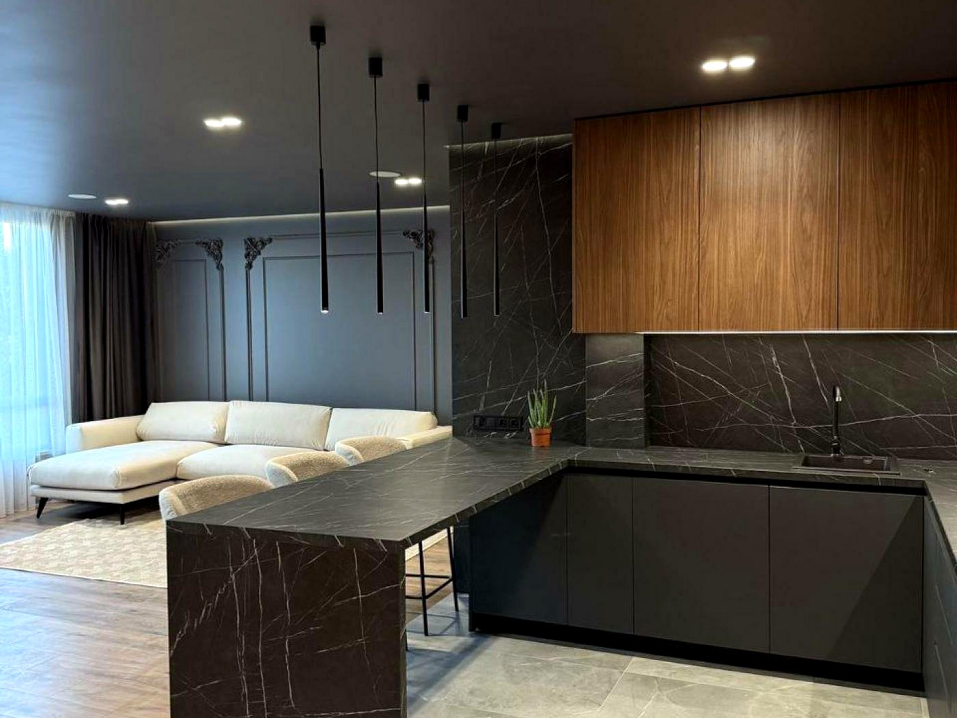 Загальна площа — 75 кв. м. та складається із великої спальні, окремої кухні з виходом на балкон, два санвузли, гардеробна. Житло облаштоване меблями та побутовою технікою — двоспальне ліжко, розкладний диван, шафа-купе, посудомийна машина, пральна, духова шафа, кондиціонер. Опалення індивідуальне газове.