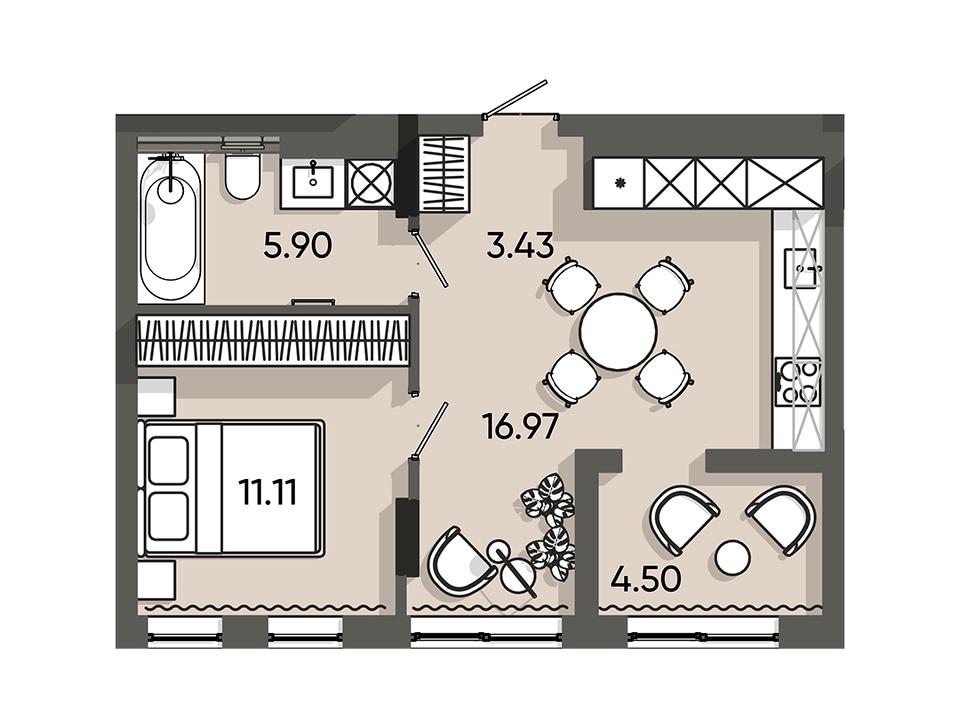 Загальна площа: 41,91 м²
