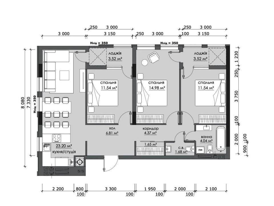 В квартирі 3 кімнати, висота стелі 2.7 метра, Технологія будівництва - Цегляна, Тип будинку - Спец. проект. Планування кімнат Кухня-вітальня. В квартирі є . Будинок побудований в 2019 році. Загальний стан квартири - Без ремонту. Комісія за послуги 5 %