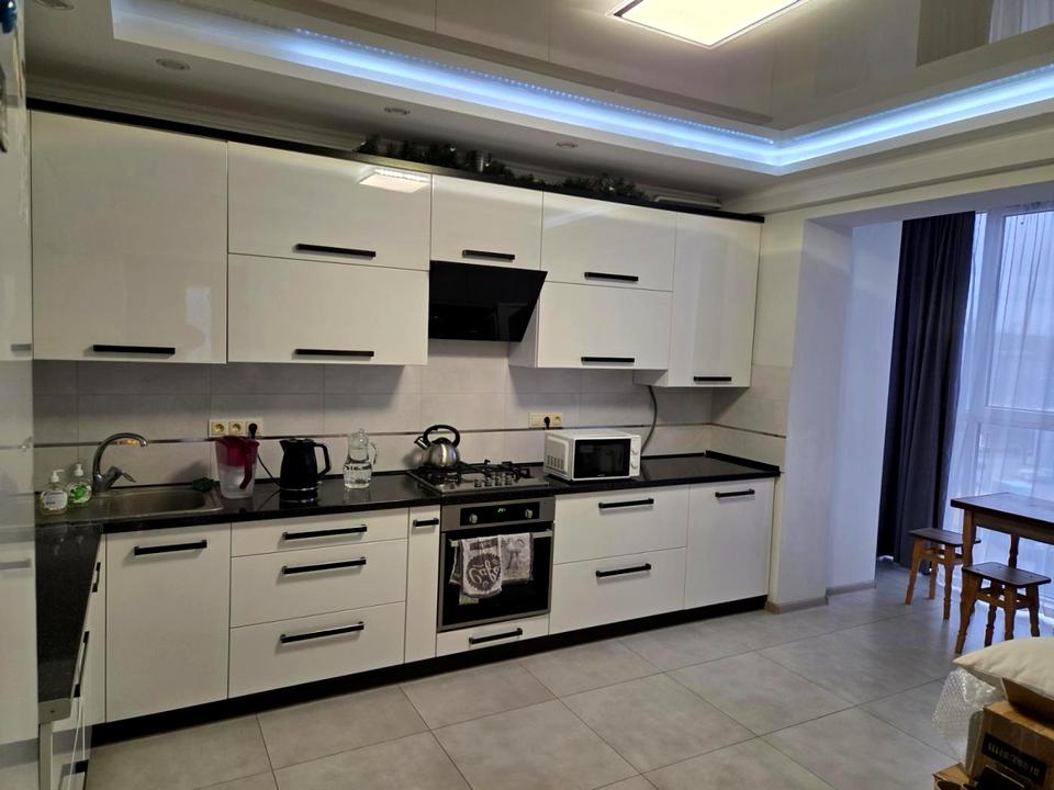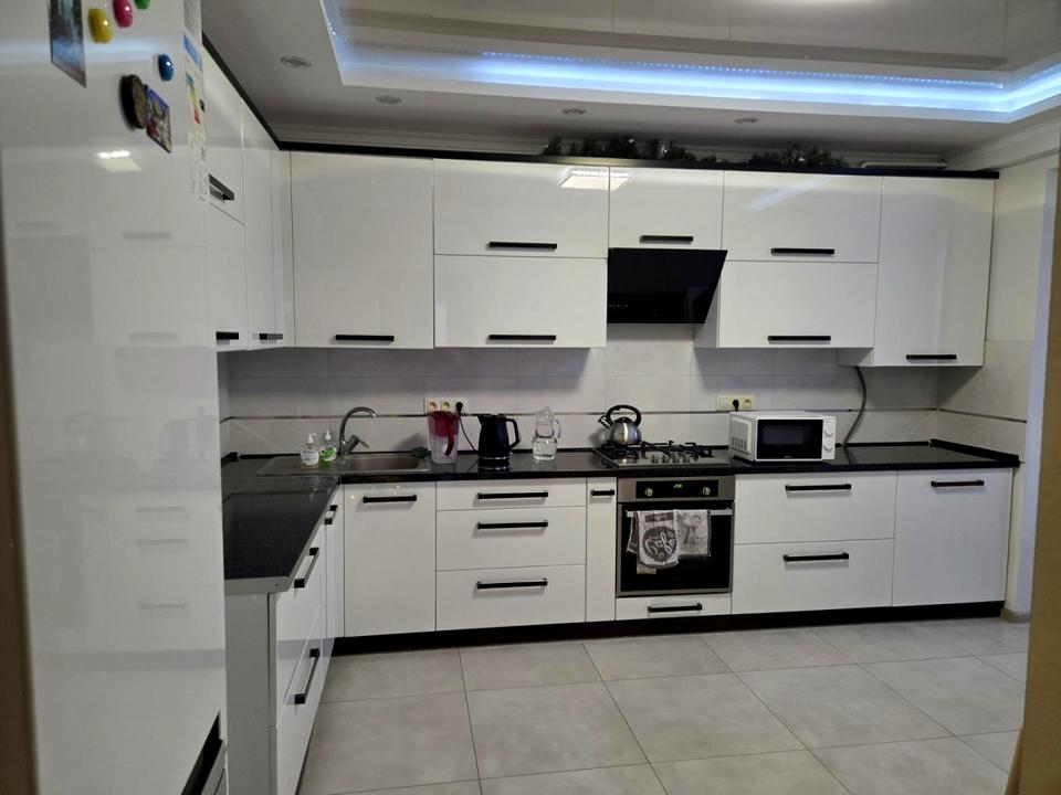 Продається ексклюзивна 2-кімнатна квартира в Личаківському районі Львова, вул. Б. Хмельницького, 2 поверх 10-поверхового цегляного будинку. Загальна площа — 77.1 м², з них кухня — 18.2 м², житлова — 38.3 м².