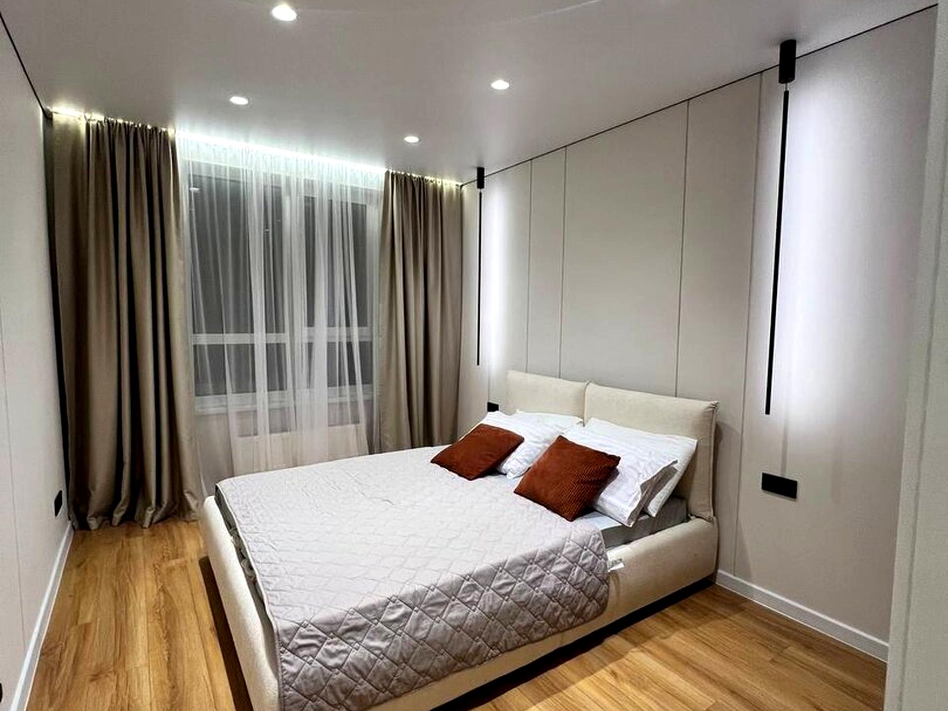 12.9 кв.м. житлової площі. Площа кухні: 20.4 кв.м. Суміжний санвузол. Новий ремонт. Дизайнерський ремонт. Броньовані вхідні двері. З підігрівом підлоги. У квартирі панорамні вікна.