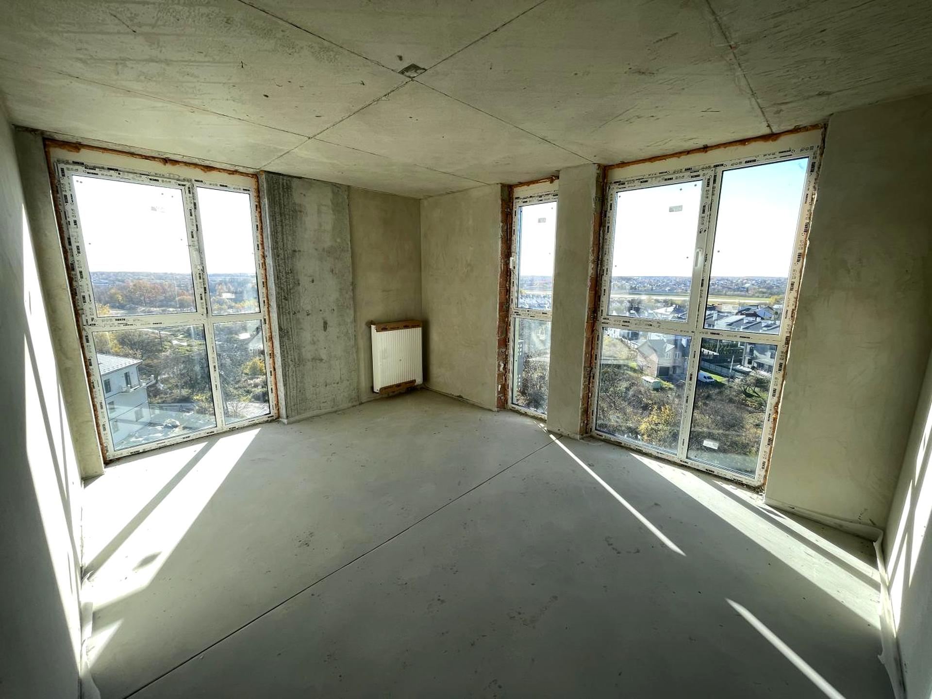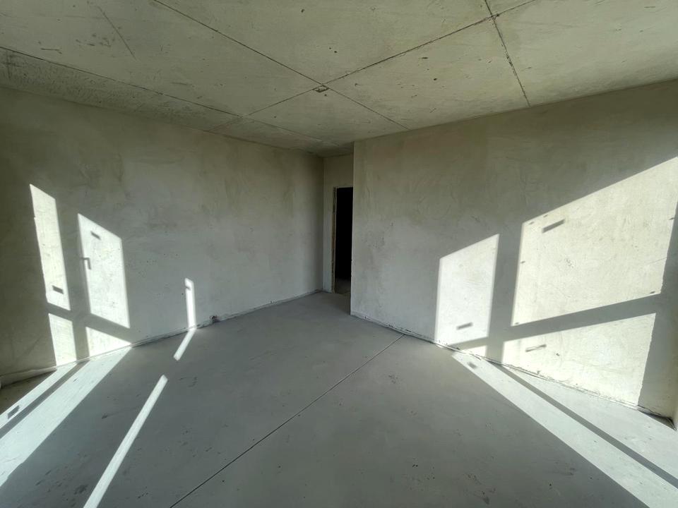 Квартира в 0-циклі, виконані роботи: чистова стяжка, штукатурка всіх стін під декоративне фарбування, всі комунікації заведені у квартиру, розводка опалення з установкою батарей та рушникосушки.