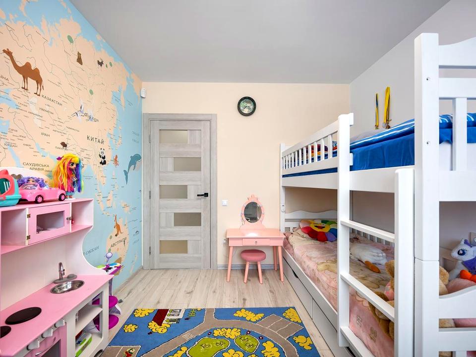 Загальна площа - 63.8 м2, житлова - 24.8 м2, кухня - 22 м2.