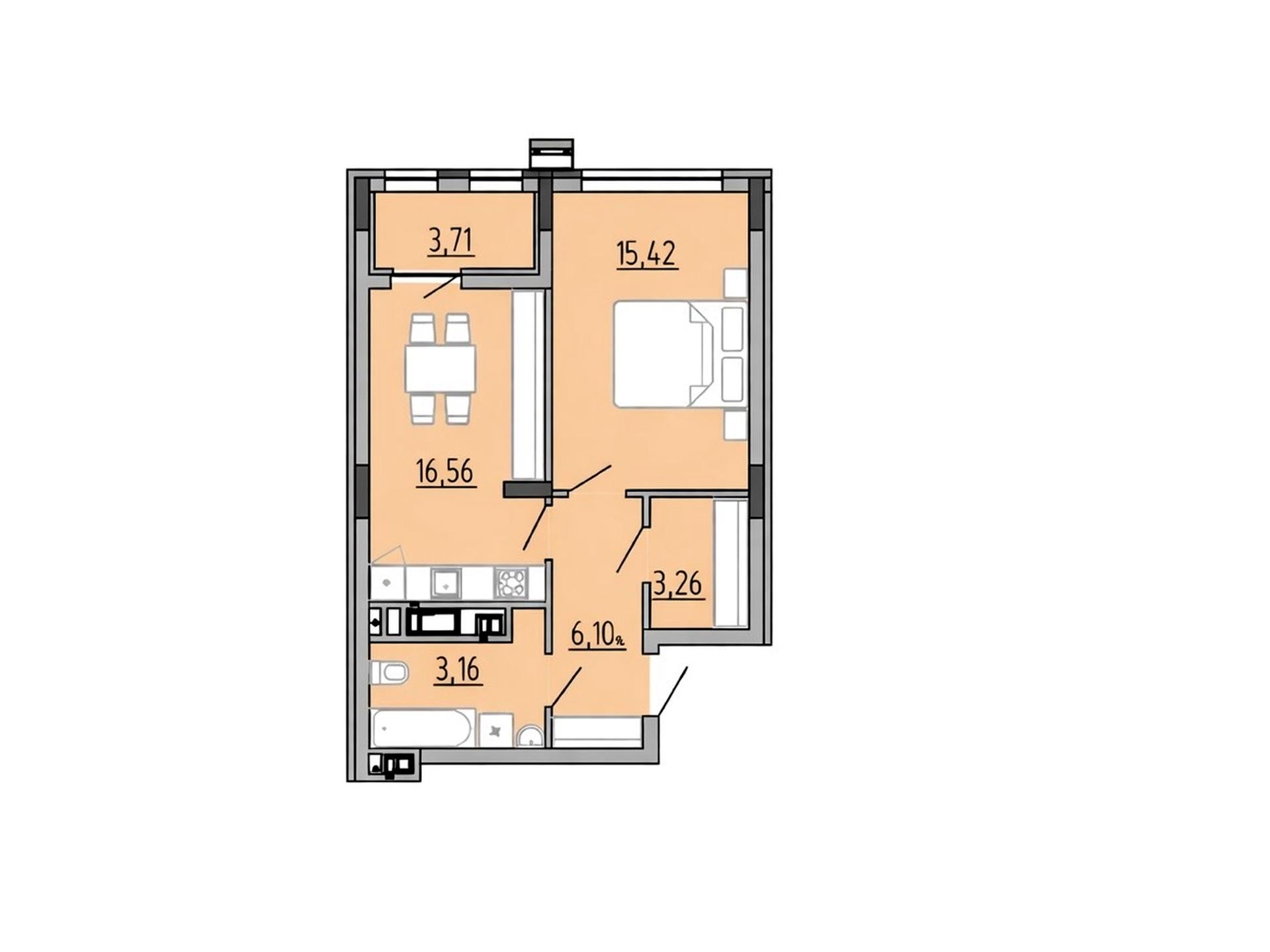 В квартирі 1 кімната, Технологія будівництва - Монолітно-каркасна, Тип будинку - Спец. проект. Планування кімнат Роздільне. Будинок побудований в 2025 році. Загальний стан квартири - Без ремонту. Комісія за послуги 5 %