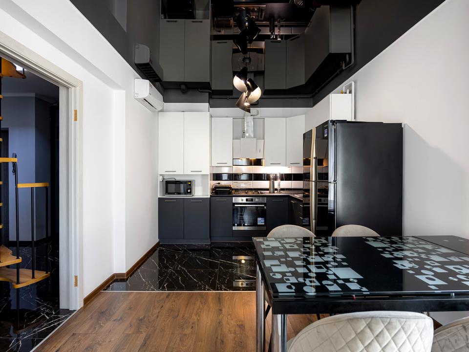 • Квартира укомплектована меблями та технікою: велика шафа-купе, кондиціонер, мікрохвильовка, холодильник, газова поверхня, пральна машина, простора ванна. В спальні двоспальне ліжко та телевізор. У вітальні великий розкладний диван.