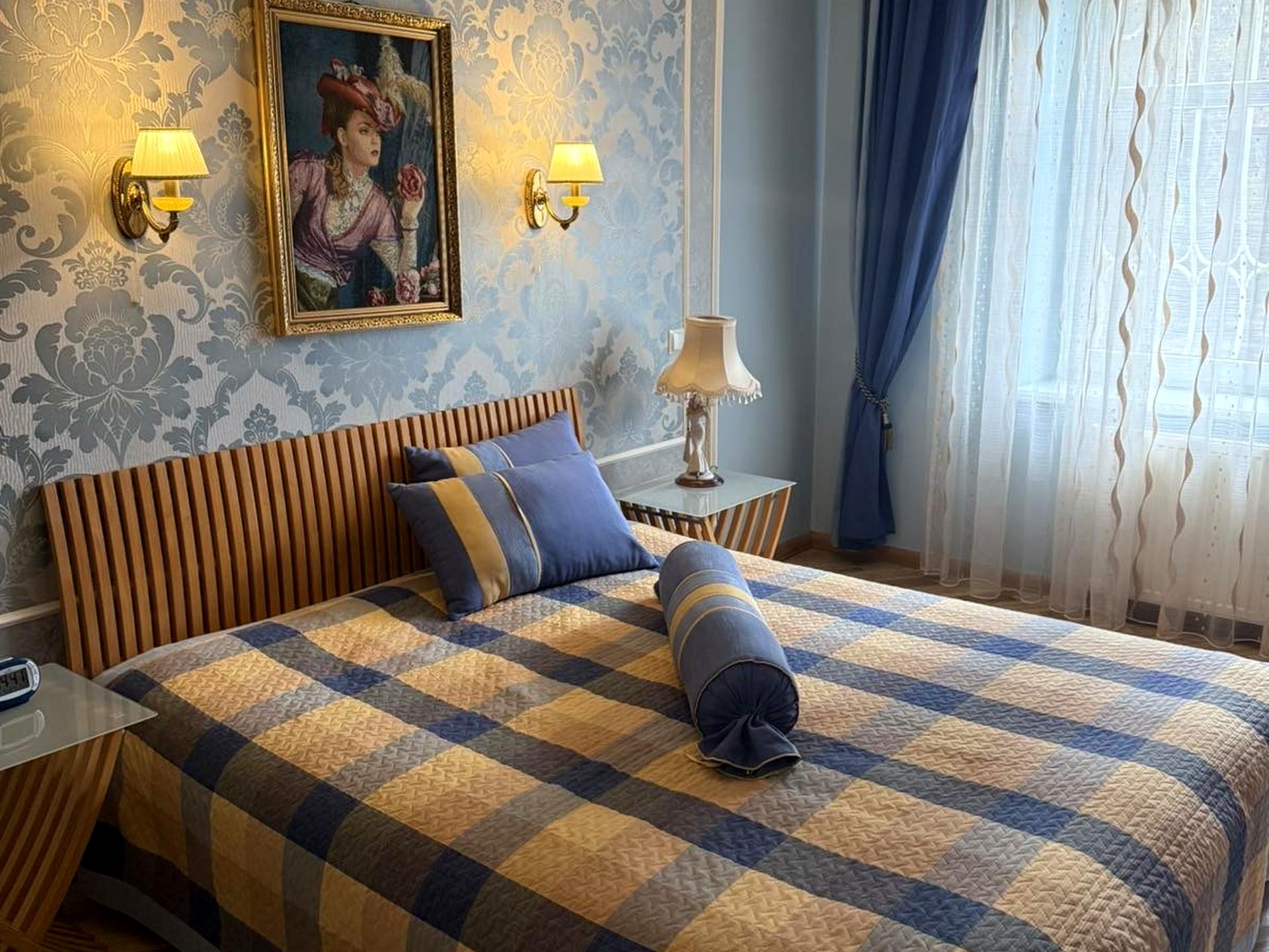 Особливість інтер’єру — художній розпис відомого митця на стінах, що додає квартирі унікальності та стилю.