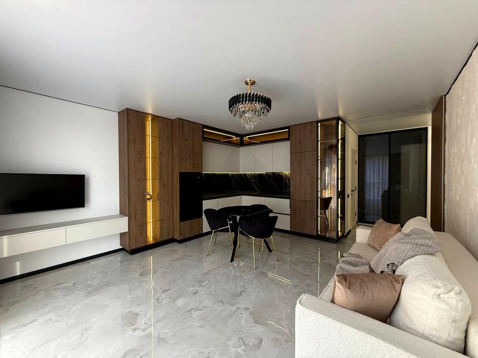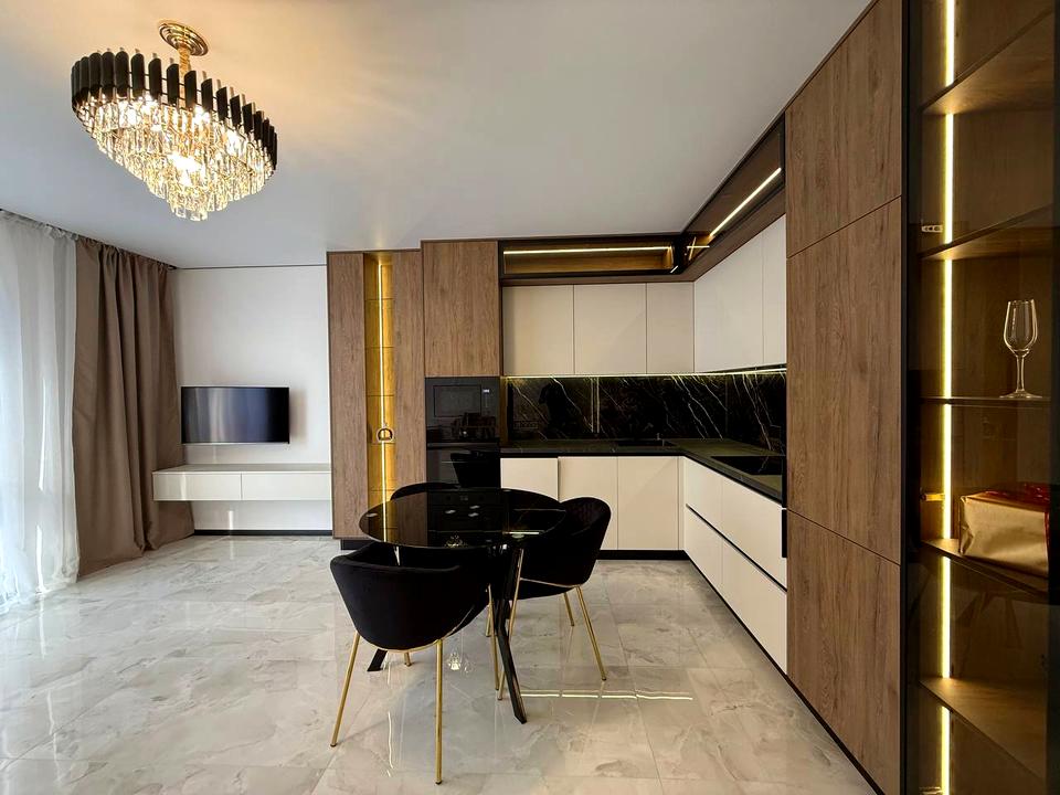 В квартирі 1 кімната, Технологія будівництва - Цегляна, Тип будинку - Спец. проект. Є газ, кухонна плита електрична. Є балкон. У квартирі є Телевізор, Підігрів підлоги, Пральна машина, Сушильна машина, Ванна, Холодильник, Мікрохвильовка, Посудомийна машина. Будинок побудований в 2024 році. Загальний стан квартири - З ремонтом. Гаряча вода - газова колонка. Кількість санвузлів: 1. Інтернет оптоволоконний. Працює без світла - інтернет. Тип кухні - кухня-студія. Кількість спален: 1. Комісія за послуги 5 %