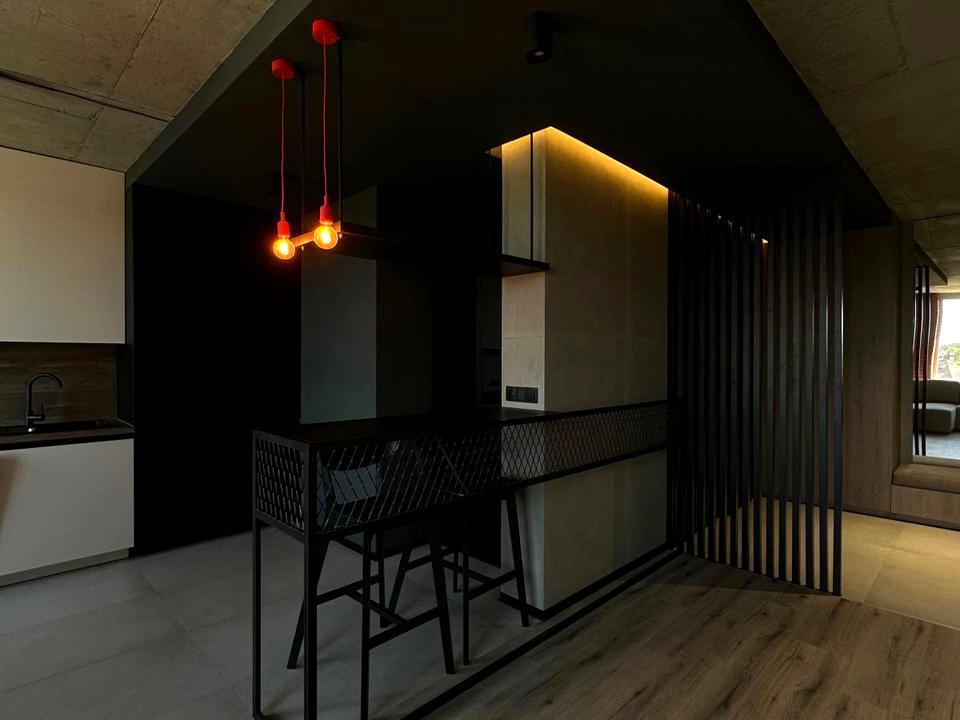 В квартирі 1 кімната, Технологія будівництва - Монолітно-каркасна, Тип будинку - Спец. проект. Немає газу, кухонна плита електрична. Немає балкона. У квартирі є Підігрів підлоги, Пральна машина, Душова кабіна, Холодильник, Посудомийна машина. Будинок побудований в 2020 році. Загальний стан квартири - З ремонтом. Гаряча вода - газовий котел. Кількість санвузлів: 1. Працює без світла - вода. Тип кухні - кухня-студія. Кількість спален: 1. Комісія за послуги 5 %