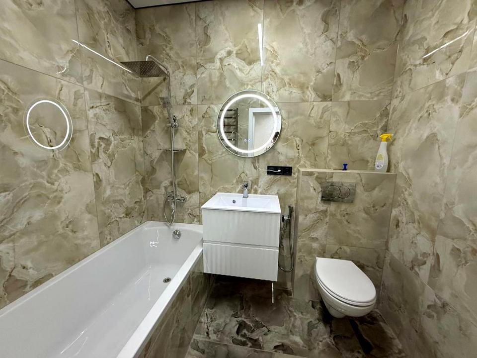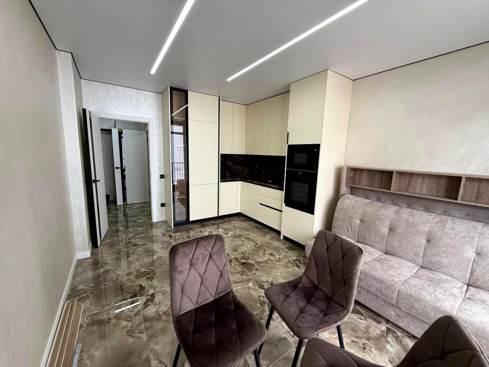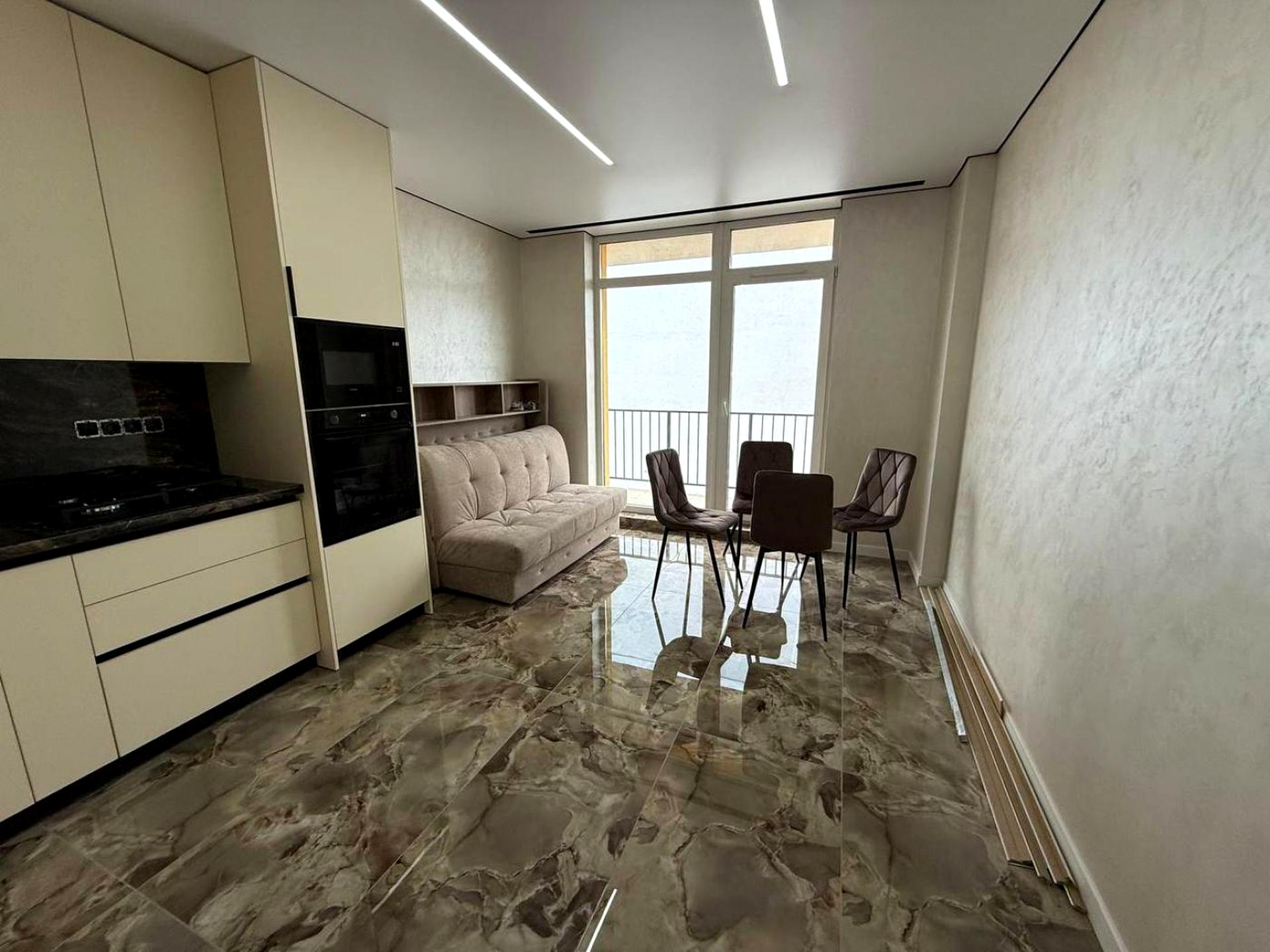 В квартирі 1 кімната, висота стелі 2.7 метра, Тип будинку - Спец. проект. Є газ, кухонна плита газова. Є балкон. У квартирі є Телевізор, Підігрів підлоги, Пральна машина, Сушильна машина, Ванна, Холодильник, Мікрохвильовка, Посудомийна машина. Будинок побудований в 2025 році. Загальний стан квартири - З ремонтом. Гаряча вода - газовий котел. Кількість санвузлів: 1. Інтернет дротовий (кабельний). Тип кухні - кухня-студія. Комісія за послуги 5 %