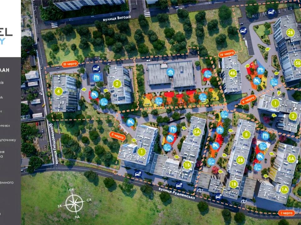 Особливості даної квартири — квартира в житловому комплексі з відкритою інфраструктурою на території. Внутрішні двори комплексу з парковою зоною, закриті для проїзду автомобілів, облаштовані широкими пішохідними доріжками з місцями для відпочинку та альтанками для великих компаній. Для маленьких мешканців комплексу «Ріел Сіті» будуть обладнані 6 дитячих ігрових майданчиків. У комплексі передбачені гостьові та підземні паркінги. Вся територія доступна для людей з обмеженими можливостями.