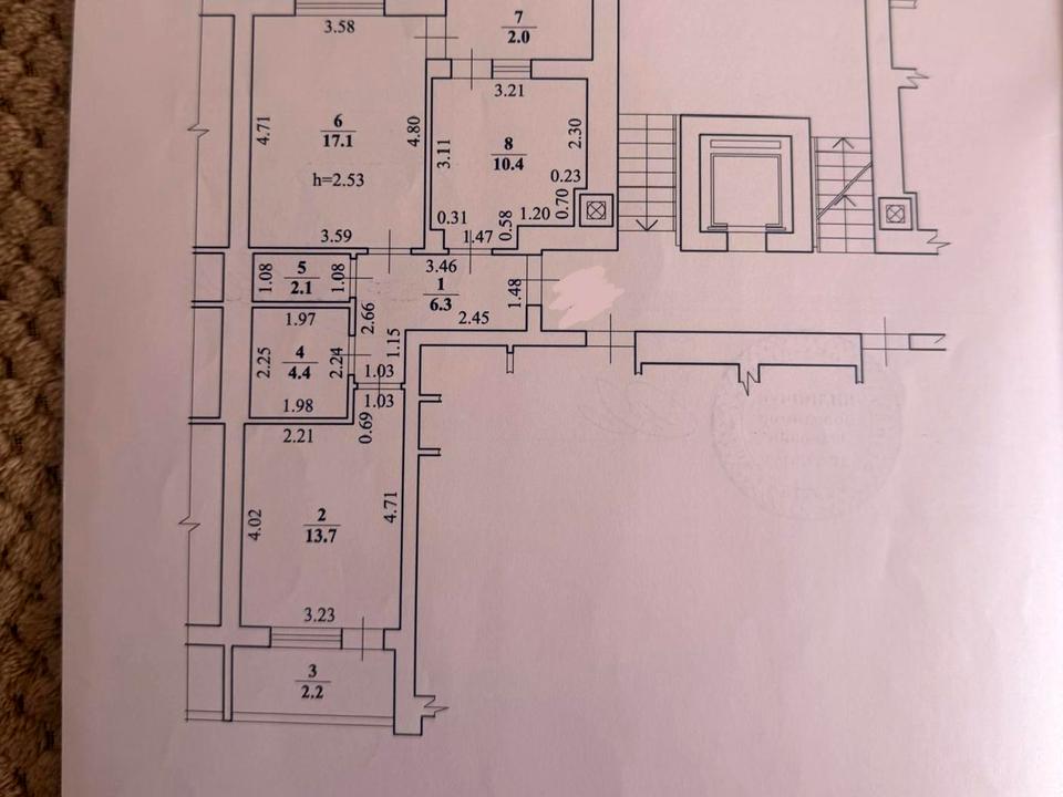 Поверх 4/9. Загальна площа квартири 58,2 кВ.м., житлова площа 30,8 кВ.м., кухня 10,4 кВ.м. В квартирі два балкони (із кухні та кімнати ). На кухні можна зробити переплавлення та збільшити площу кухні обʼєднавши кухню з балконом. Квартира двостороння.