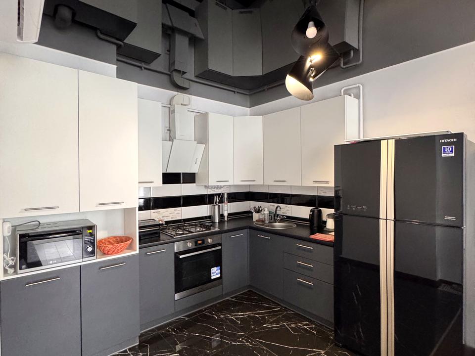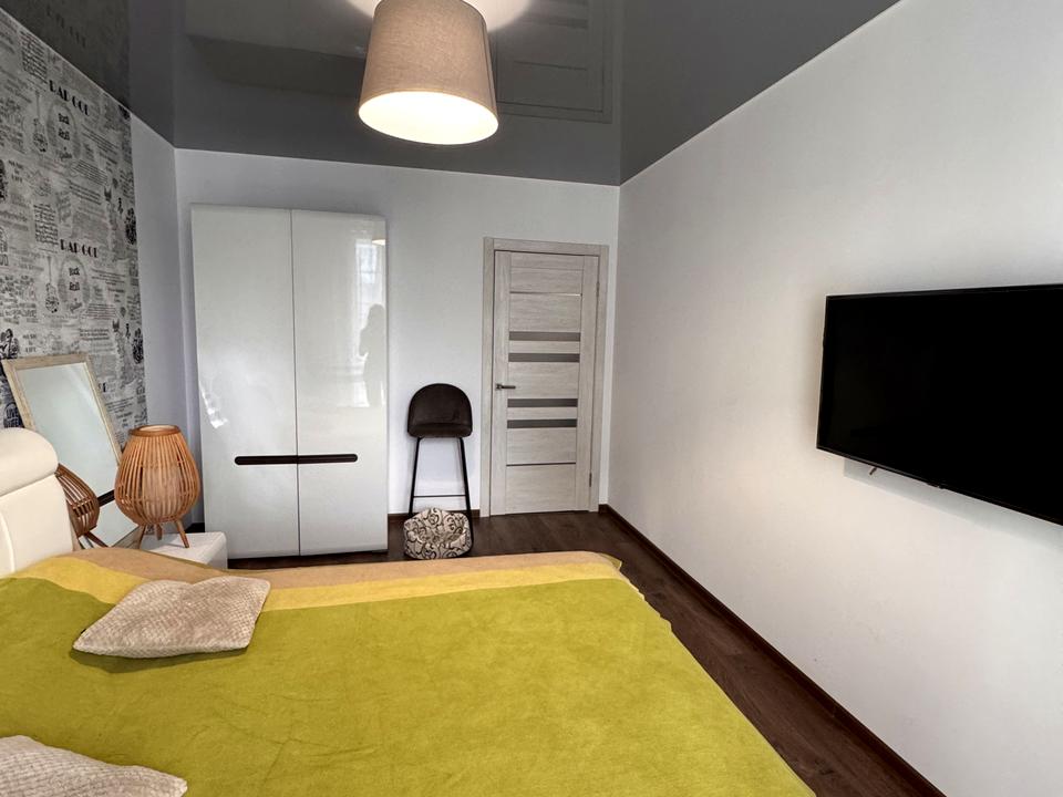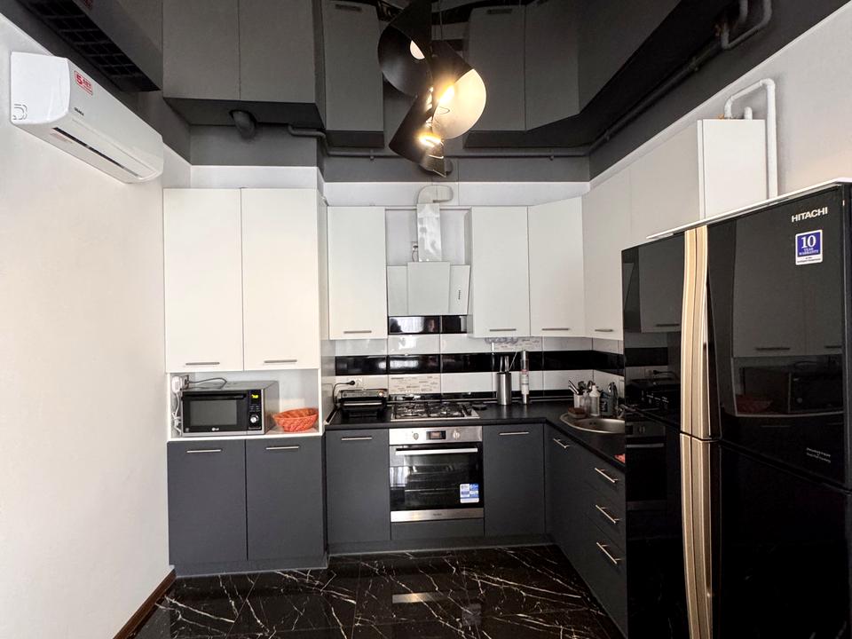 В квартирі зроблений сучасний евроремонт. Вся необхідна техніка, а саме, мікрохвильова піч, духова піч, газова плита, холодильник, кондеціонер, пральна машина, два телевізори. також є багато місця для зберігання речей.