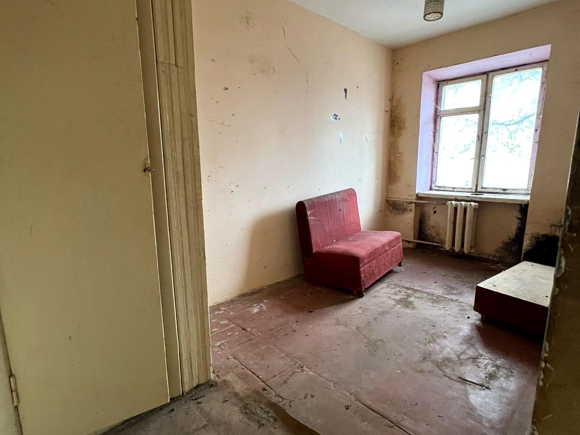 Вхід з загального коридору в невеличкий коридор + дві окремі кімнати. Додатково є спільна кухня на поверсі та санвузол, є можливість завести трубу 100-ку.