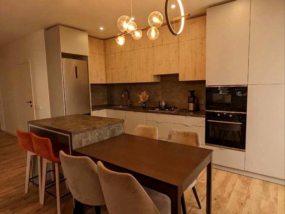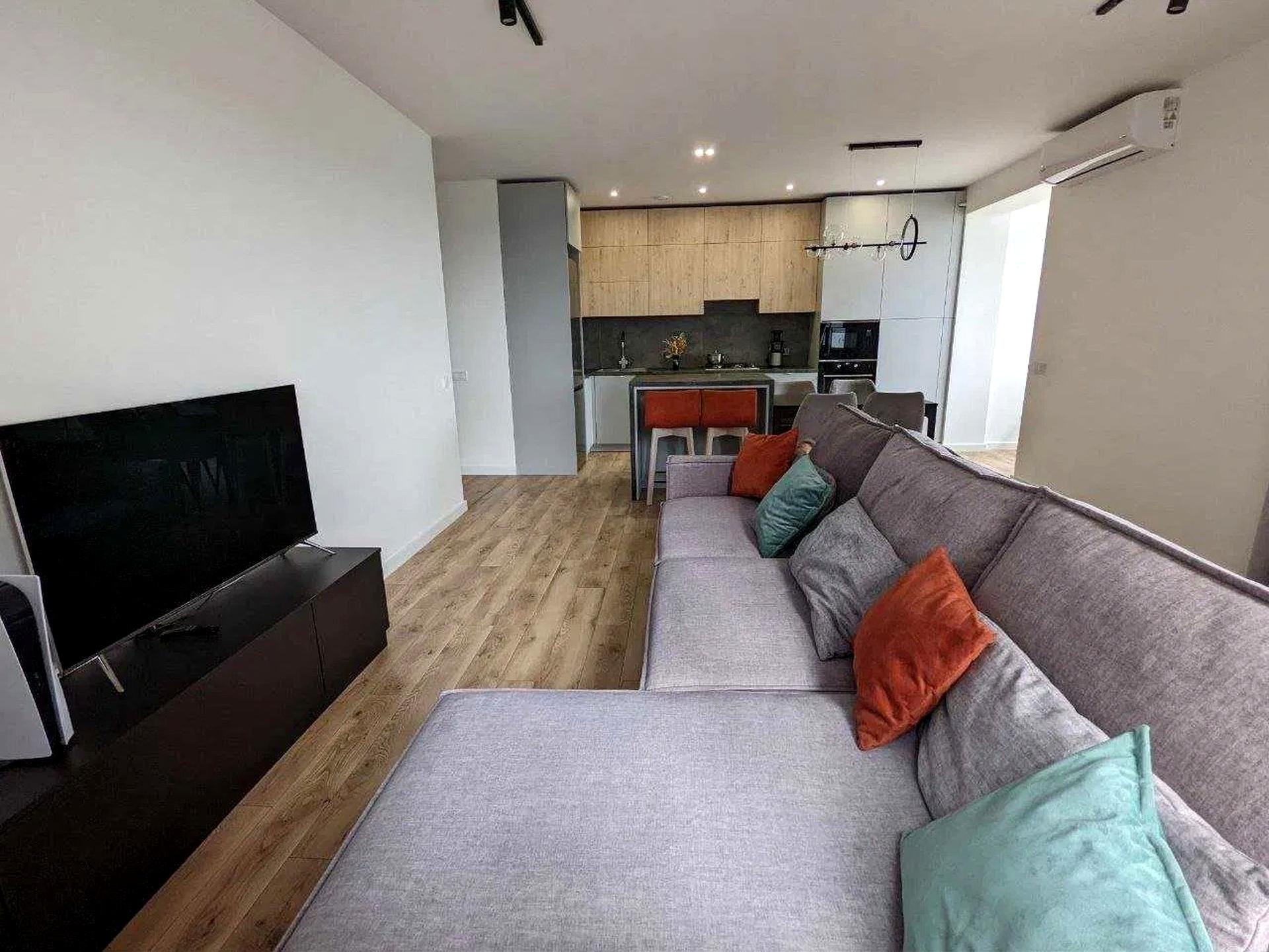 Квартира повністю укомплектована меблями та побутовою технікою: духова шафа, холодильник, мікрохвильова піч, посудомийна машина, пральна та сушильна машини, кондиціонер, телевізор, фільтр зворотного осмосу.