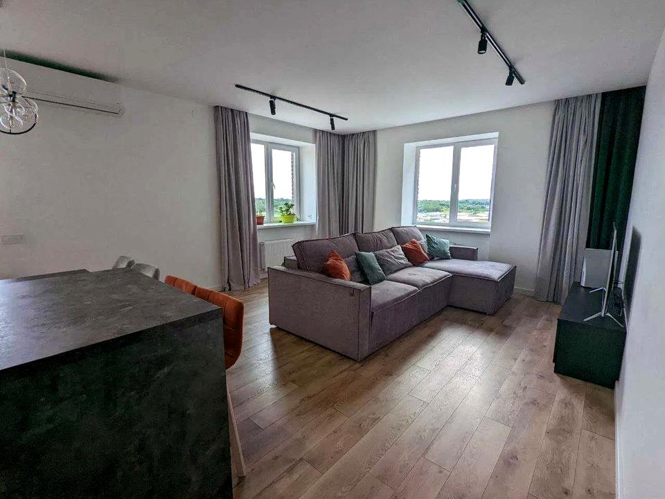 Пропонується простора квартира з якісним євроремонтом у сучасному житловому комплексі комфорт-класу. Функціональне роздільне планування: дві окремі спальні (12.7 м² та 13.9 м²), простора кухня-вітальня (35 м²), лоджія з облаштованим робочим місцем, два санвузли.