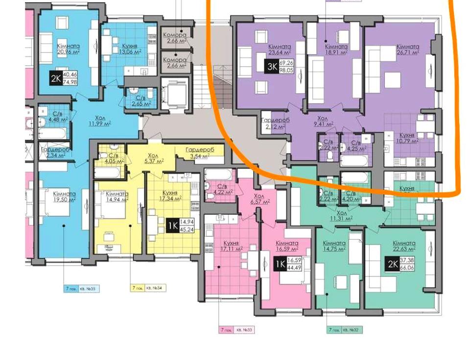 • також є 2 кімн. Квартира на цьому поверсі