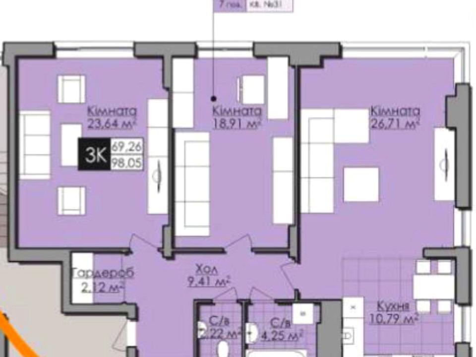Площа: 98.05м² / кухня 11м²
