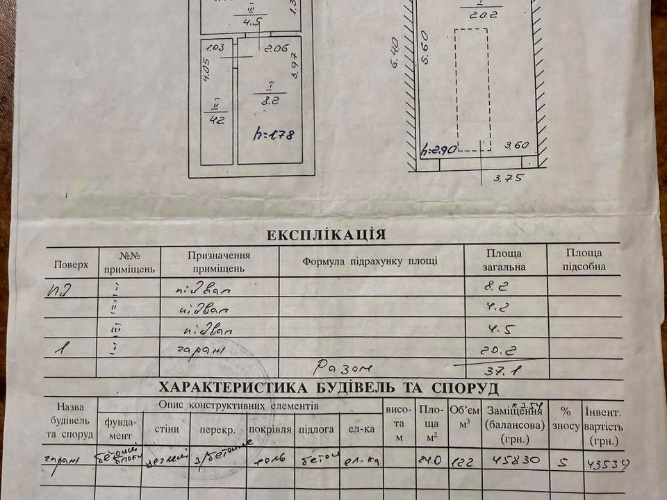 * Гараж: 20 м.кв. (чистий, сухий, підлога та стіни викладено плиткою).
