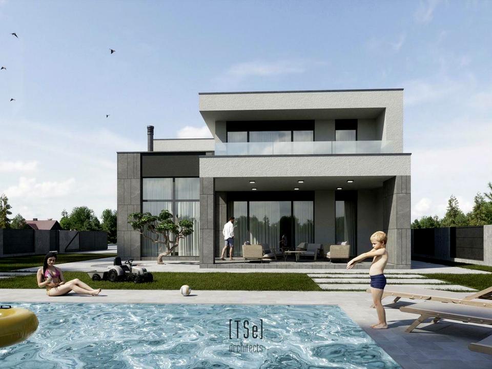 Загальна площа будинку - 233 м2, житлова - 78 м2, кухня-вітальня - 62 м2. Дві тераси площею 29 м2 та 24 м2.