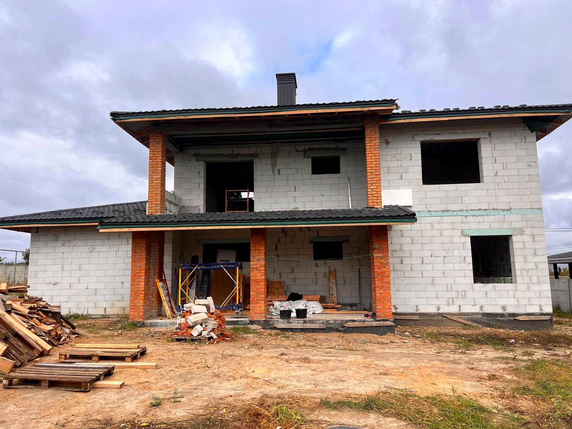 Протягом місяця буде завершено: фасад, внутрішню штукатурку, електрику, стяжку підлоги, встановлення воріт та отмостку навколо будинку.