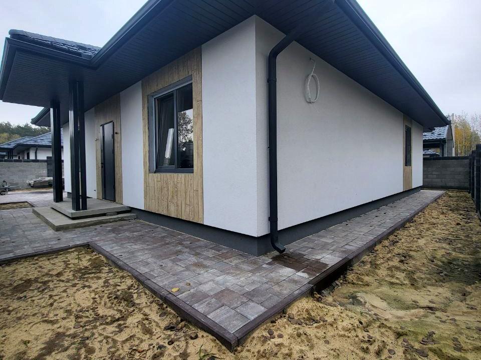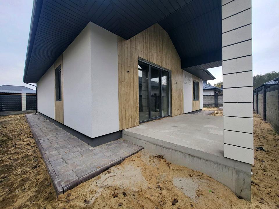 1но поверховий: 3 кімнати,кухня вітальня з виходом на терасу, роздільний сан.вузол, підсобка. Всі комунікації: газ (в процесі),світло 16кВт, вода скважина, септик.