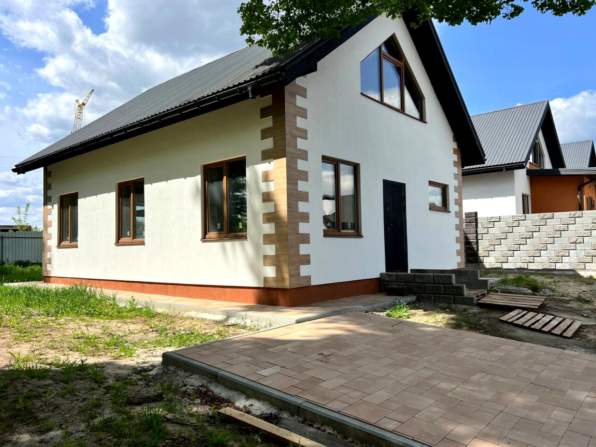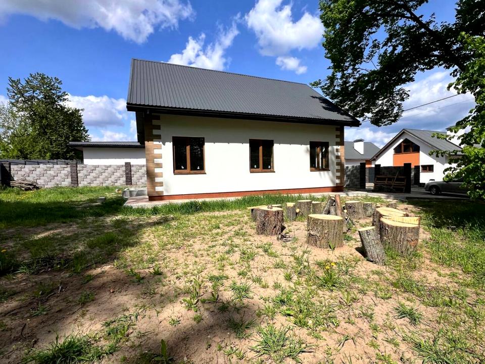 Будинок, 2 поверхи, 3 кімнати. Матеріал стін - цегляний, фундамент будинку - блоки, матеріал перекриттів - дерево. Під'їзд до будинку - асфальт. Площа ділянки 4 сотки. Висота стелі 2.8 метра. Планування кімнат Роздільне. Газ на вулиці. Холодна вода - свердловина, гаряча вода - електричний бойлер. Опалення котел твердопаливний. В будинку немає балконів. Тип кухні - кухня-студія. Покриття даху - металочерепиця. Немає підвалу. У будинку є Сад/город. Будинок побудований в 2022 році. Своя каналізація. Загальний стан будинку - Без ремонту. Кількість санвузлів: 2. Інтернет оптоволоконний. Зовнішнє утеплення стін. Власник погоджується продати по програмі єОселя. Працює без світла - опалення, інтернет. Власник погоджується продати по програмі єВідновлення. Кількість паркомісць: 2. Кухонна плита електрична. Кількість спален: 3. Без комісії
