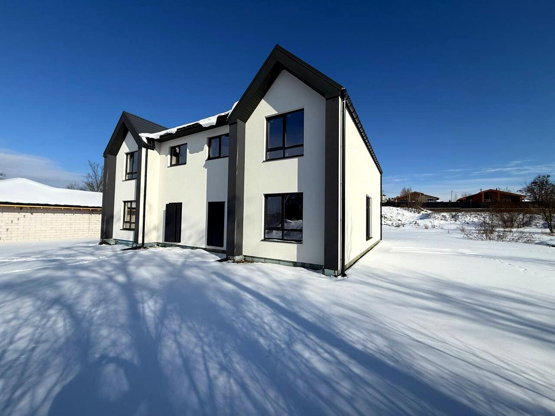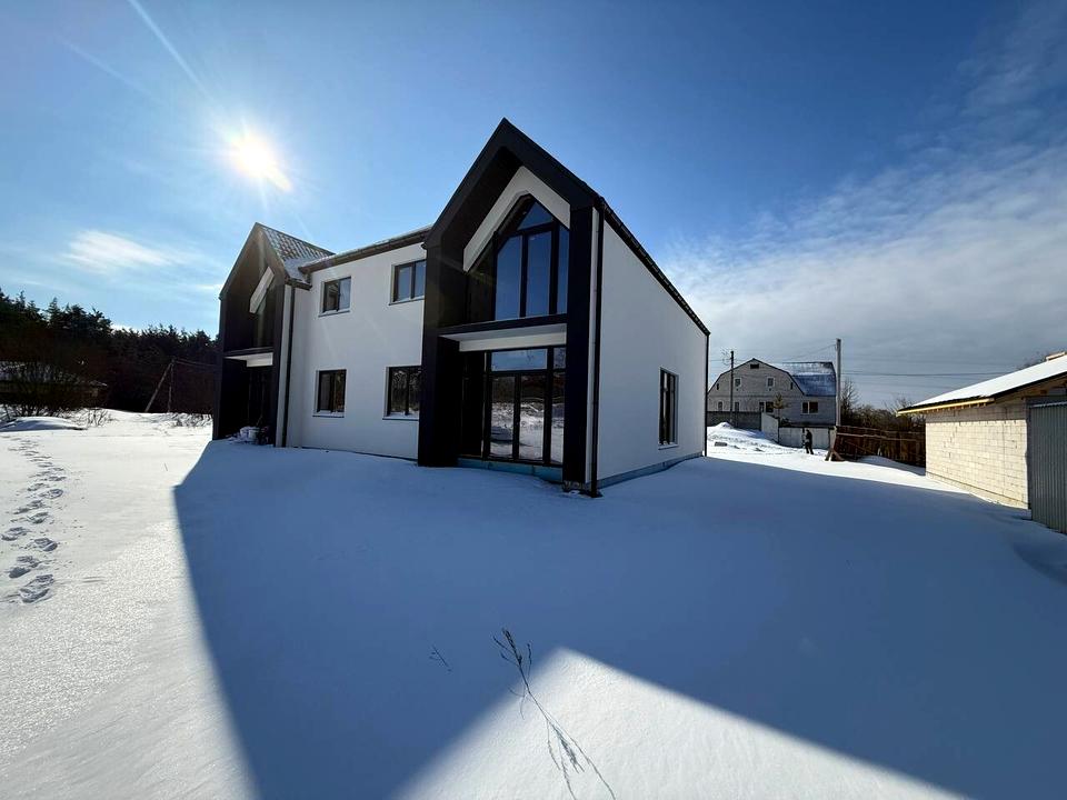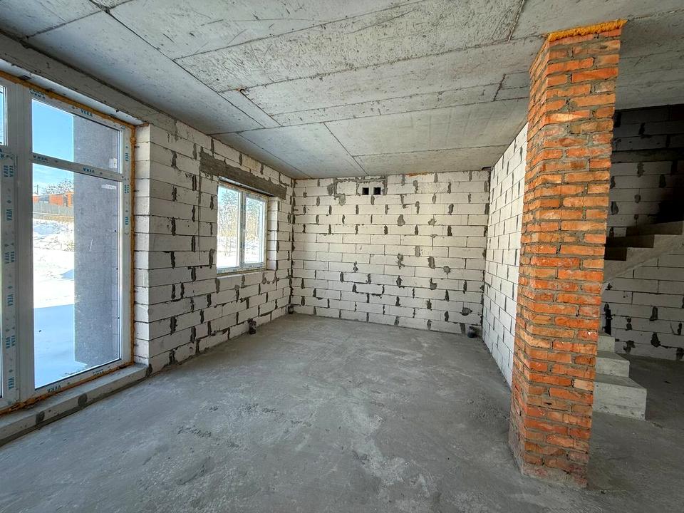 Дуплекс, 2 поверхи, 4 кімнати. Матеріал стін - газоблок. Під'їзд до будинку - асфальт. Площа ділянки 5 соток. Тип кухні - кухня-студія. Своя каналізація. Загальний стан будинку - Без ремонту. Холодна вода - свердловина. Опалення котел електричний. Кількість санвузлів: 2. Кількість паркомісць: 1. Кількість спален: 4. Без комісії