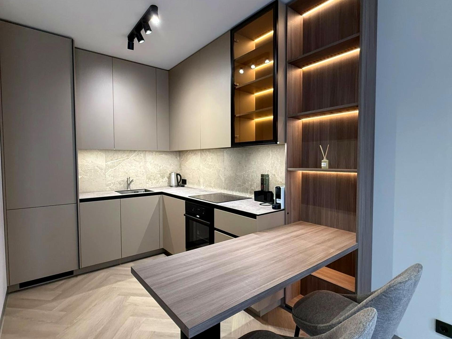 • Планування: простора кухня-вітальня, окрема спальня, гардеробна, санвузол