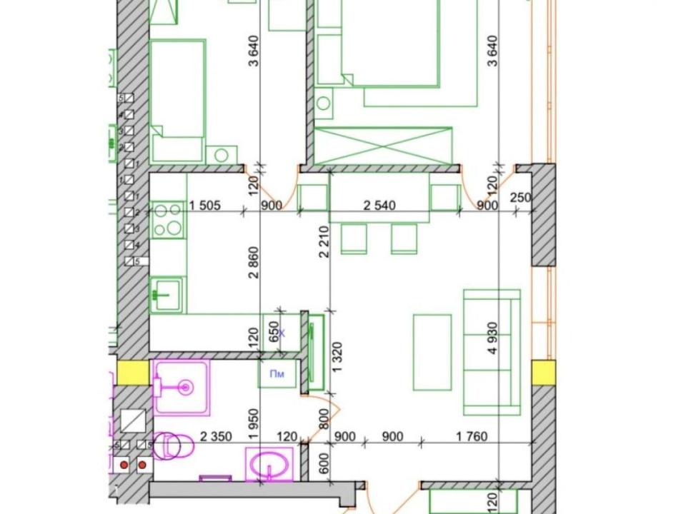 Планування: кухня-вітальня, 2 спальні, суміжний санвузол, передпокій.