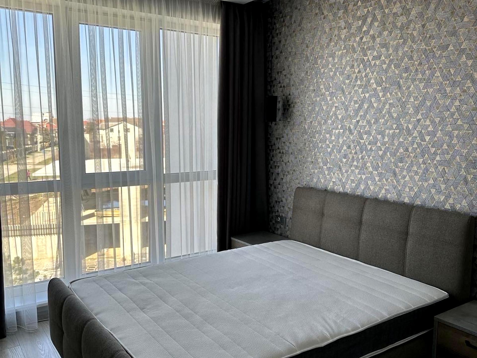 Кв-ра знаходиться в сучасному ЖК " Квадрат" на 4 поверсі, з великою кухнею-вітальнею, спальнею, гардеробною, санвузлом і прихожою. У квартирі зроблено сучасний та якісний ремонт,панорамні вікна.