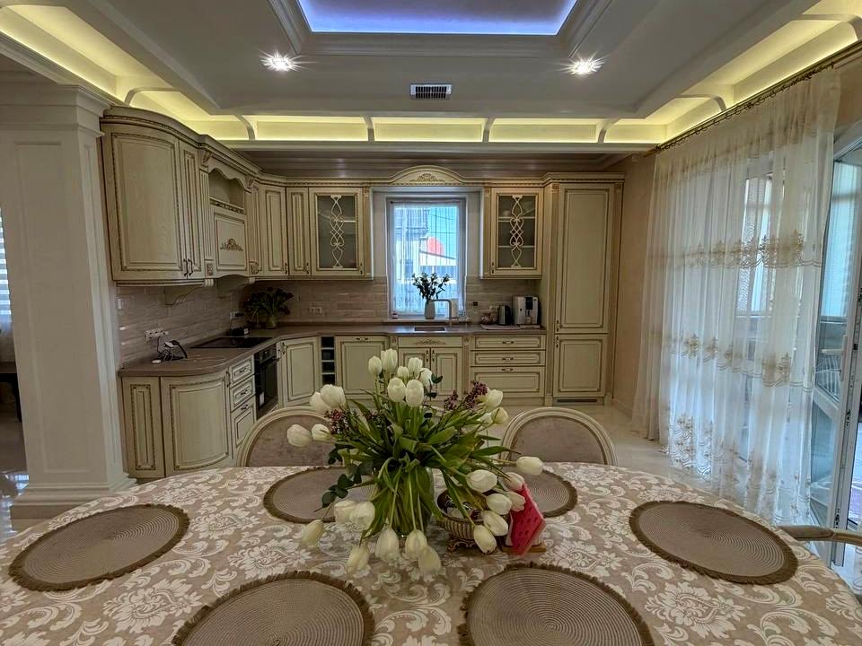 Будинок, 1 поверх, 3 кімнати. Матеріал стін - цегляний, фундамент будинку - залізобетон, матеріал перекриттів - дерево. Під'їзд до будинку - асфальт. Площа ділянки 10 соток. Висота стелі 3 метра. Покриття підлоги: покриття підлоги - паркет. Тип кухні - кухня-студія. Немає підвалу. У будинку є Телевізор, Кабельне ТБ, Підігрів підлоги, Камін, Кондиціонер, Пральна машина, Сушильна машина, Ванна, Холодильник, Мікрохвильовка, Посудомийна машина, Сигналізація, Автополив, Газон, Сад/город, Зона мангалу, Тераса, Бесідка. Будинок побудований в 2020 році. Своя каналізація. Загальний стан будинку - З ремонтом. Опалення котел електричний. Кількість санвузлів: 1. Покриття даху - черепиця. Тип автономної електроенергії: Автономної електроенергії немає. Кількість спален: 3. Комісія за послуги 2 %