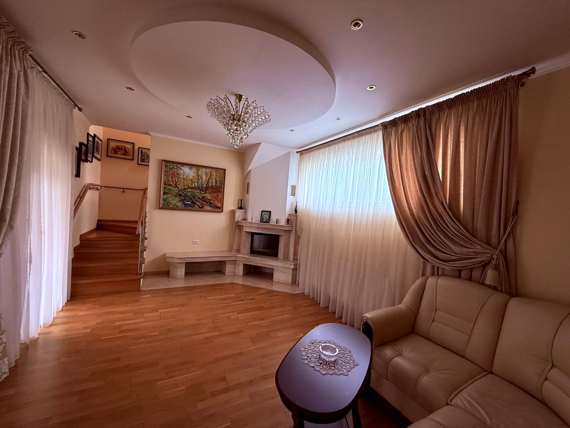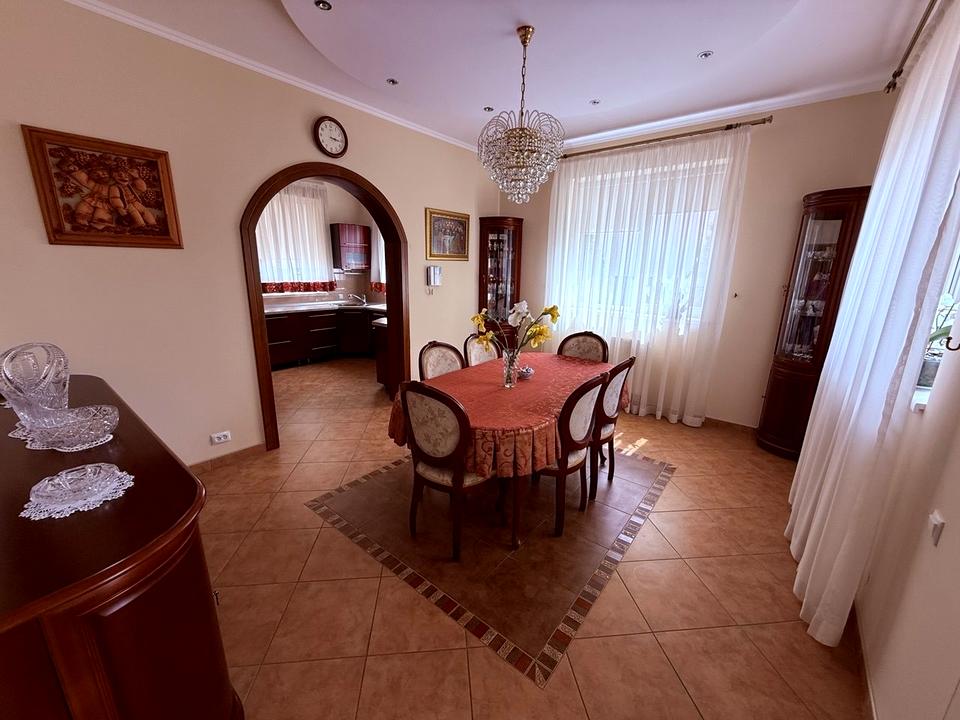 Будинок, 2 поверхи, 6 кімнат. Матеріал стін - пінобетон. Під'їзд до будинку - асфальт. Площа ділянки 12 соток. В будинку 2 балкони. Тип кухні - кухня-студія. Є підвал. У будинку є Камін, Кондиціонер, Пральна машина, Ванна, Холодильник, Сигналізація, Автополив, Газон, Сад/город, Зона мангалу, Гараж, Тераса, Бесідка. Централізована каналізація. Загальний стан будинку - З ремонтом. Газ централізований у будинку. Холодна вода - свердловина. Гаряча вода - газовий котел. Опалення котел газовий. Кількість санвузлів: 2. Покриття даху - черепиця. Інтернет бездротовий. Кількість паркомісць: 2. Кухонна плита газова. Кількість спален: 4. Комісія за послуги 2 %