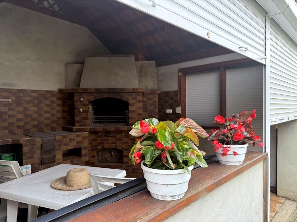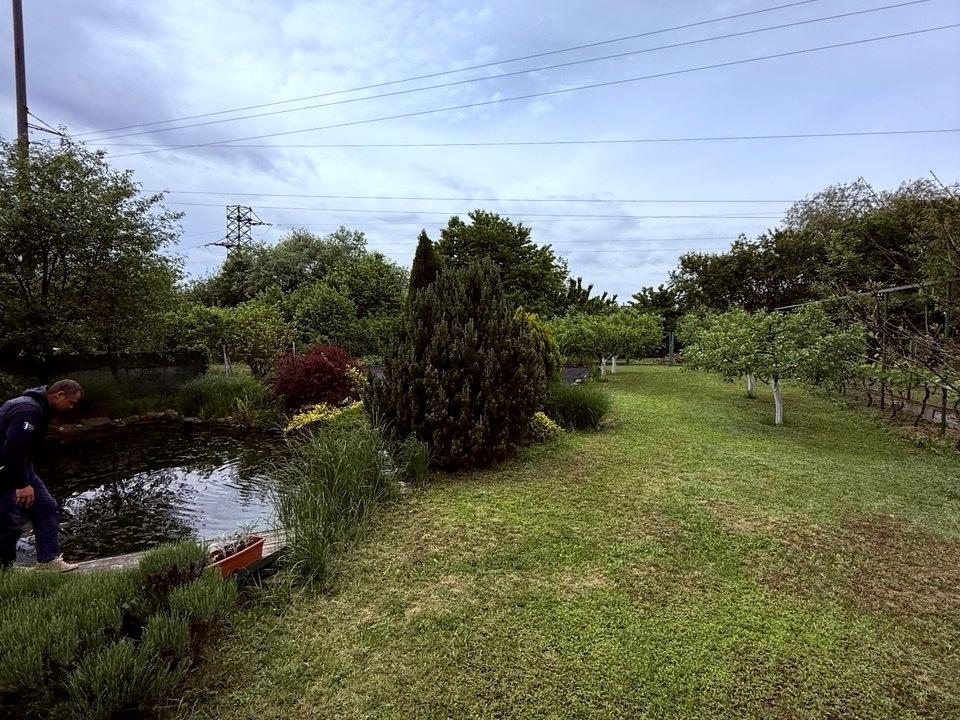 У дворі побудована гарна бесідка з зоною барбекю, біля неї гарна водойма з рибками.